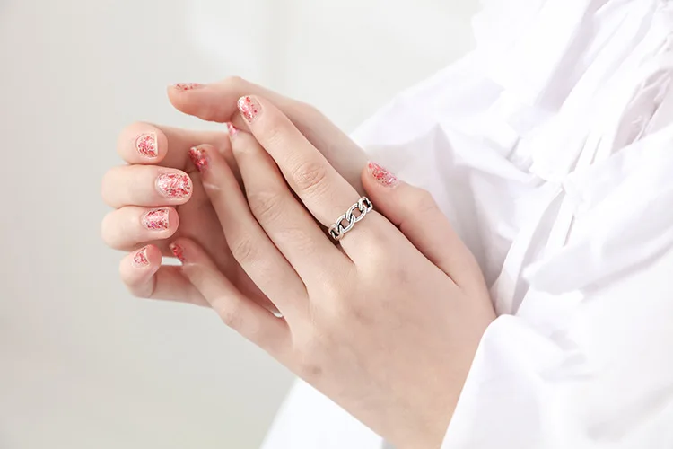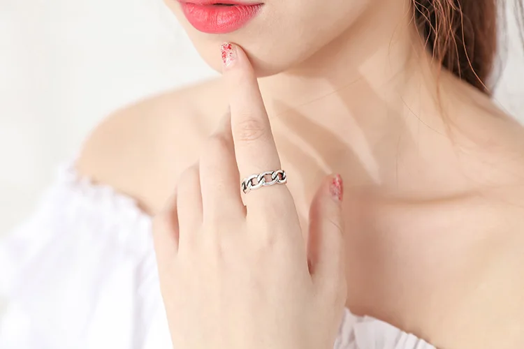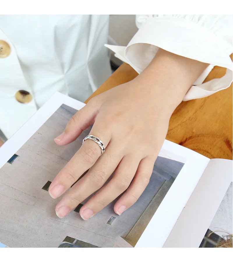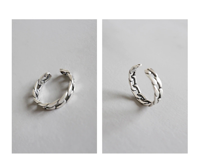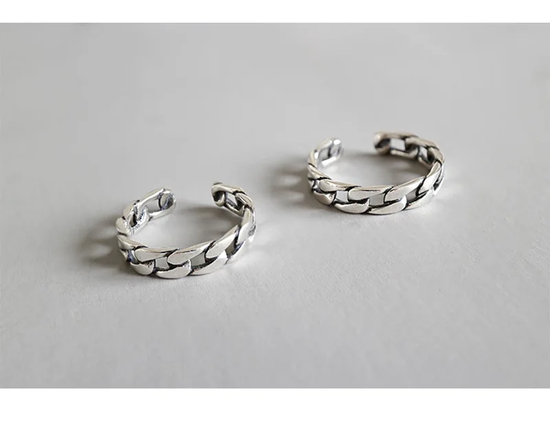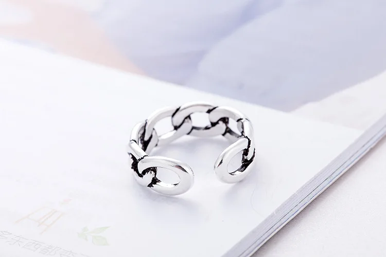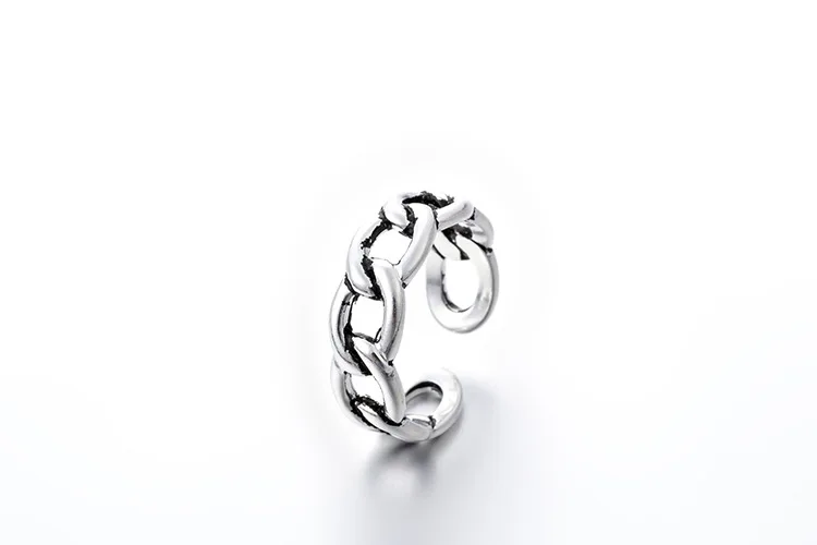 victoria’s vogue Retro 925 Sterling Silver Jewelry Not Allergic Chain Shaped Hollow Simple Old Domineering Opening Rings