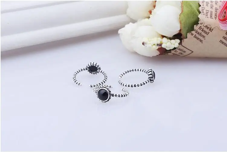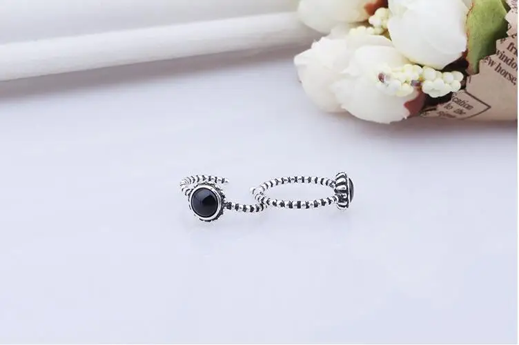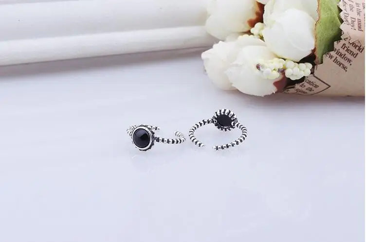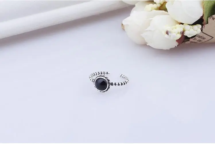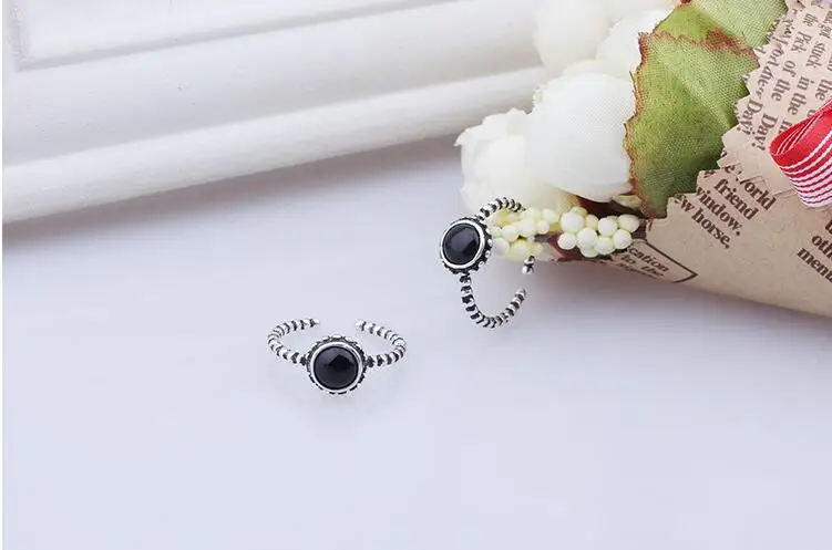 Victoria’s Vogue Retro 925 Sterling Silver Jewelry Thai Silver Creative Twist Black Female Accessories Opening Ring