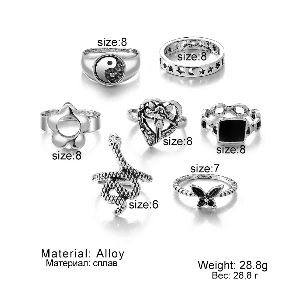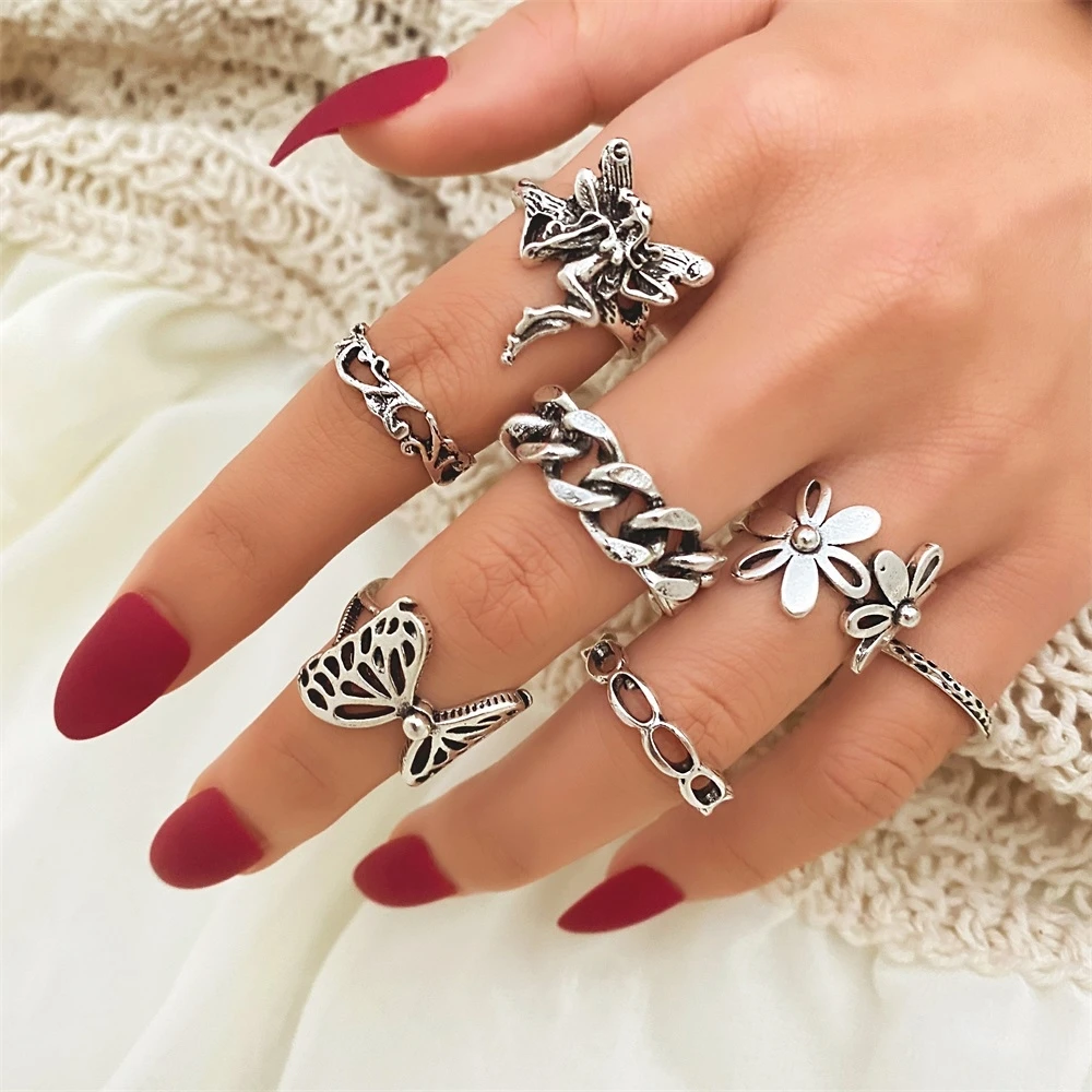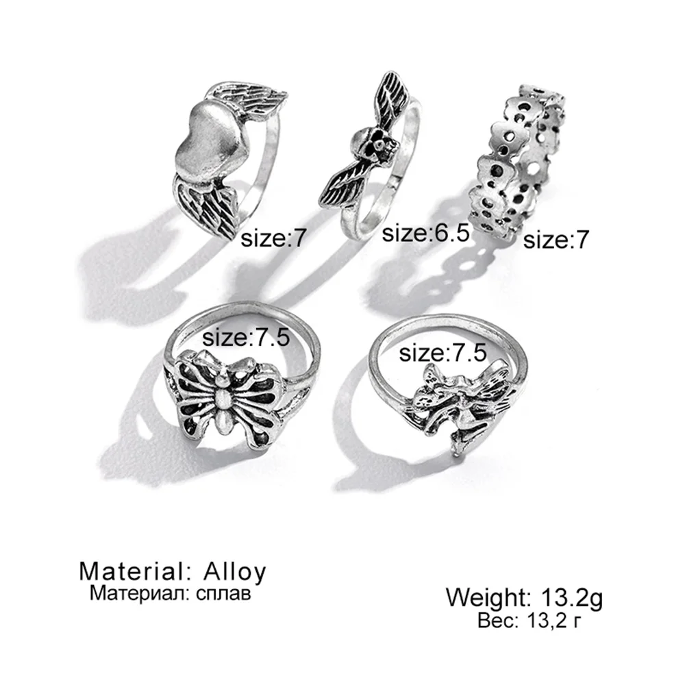 victoria’s vogue Retro Flower Butterfly Angel Rings Set creative Personality Punk Hip hop Men and Women Party Rings Jewelry Gifts