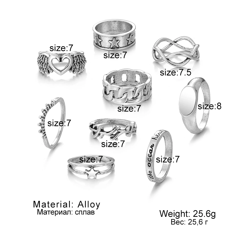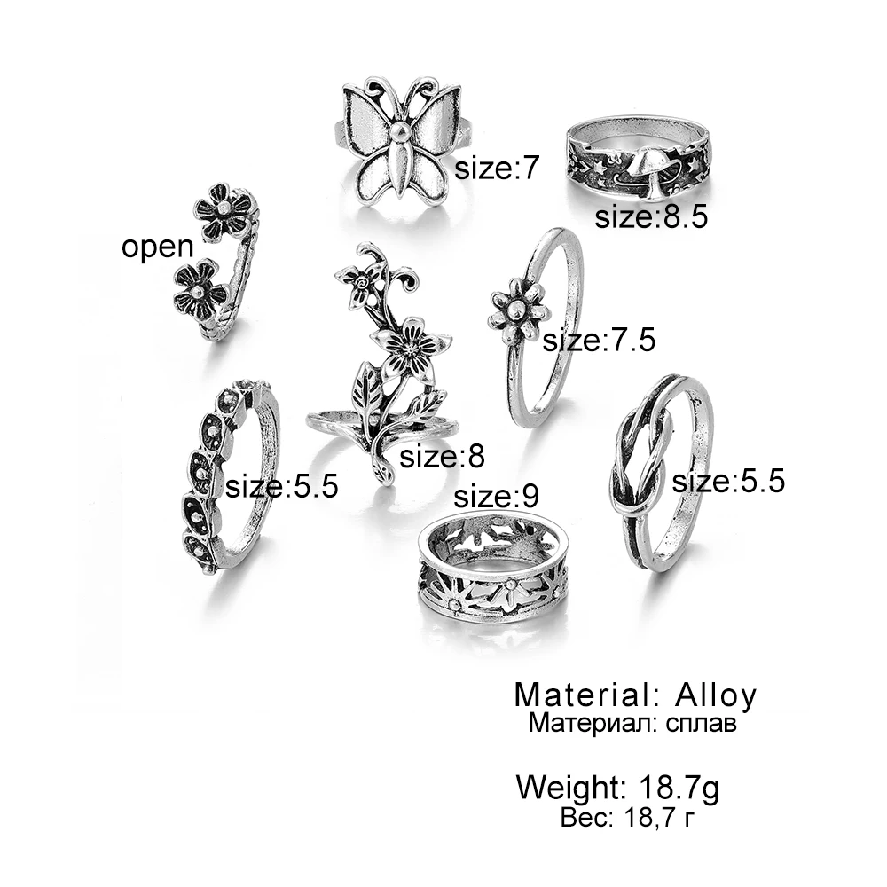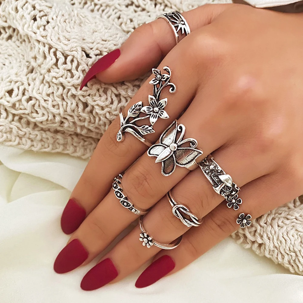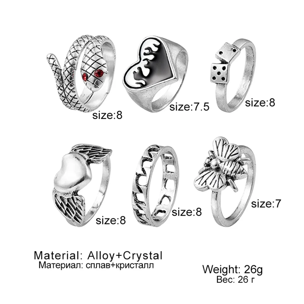 victoria’s vogue Retro Flower Butterfly Angel Rings Set creative Personality Punk Hip hop Men and Women Party Rings Jewelry Gifts
