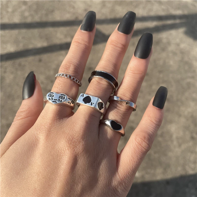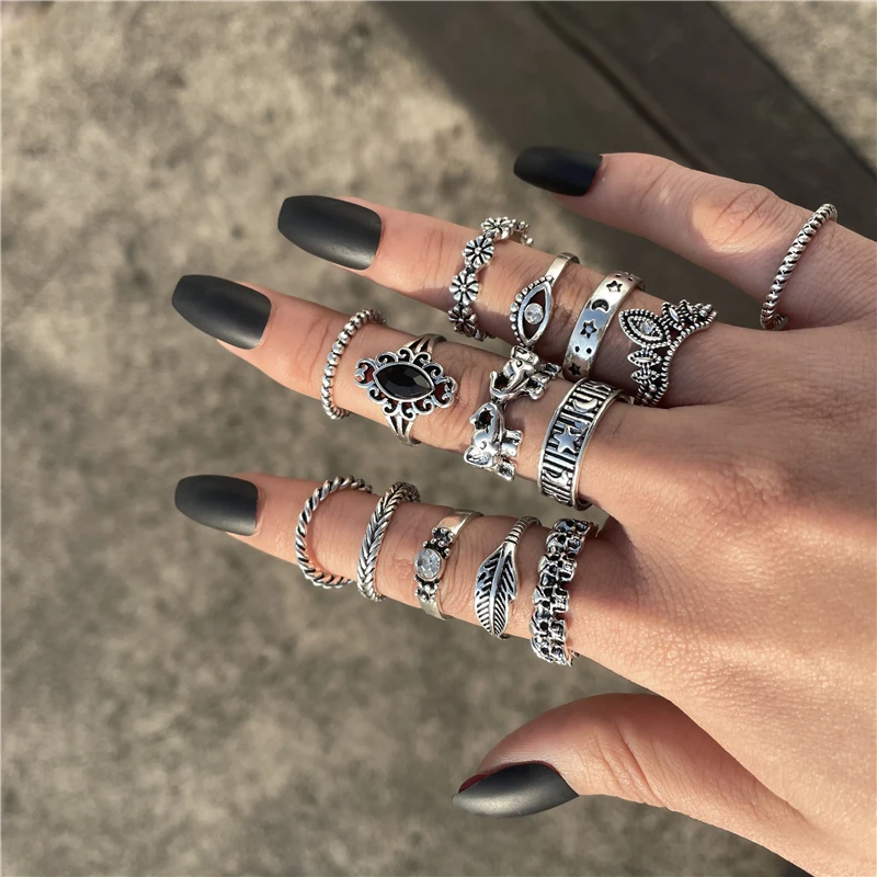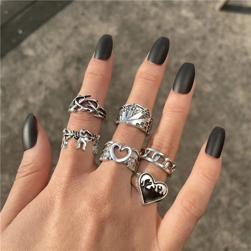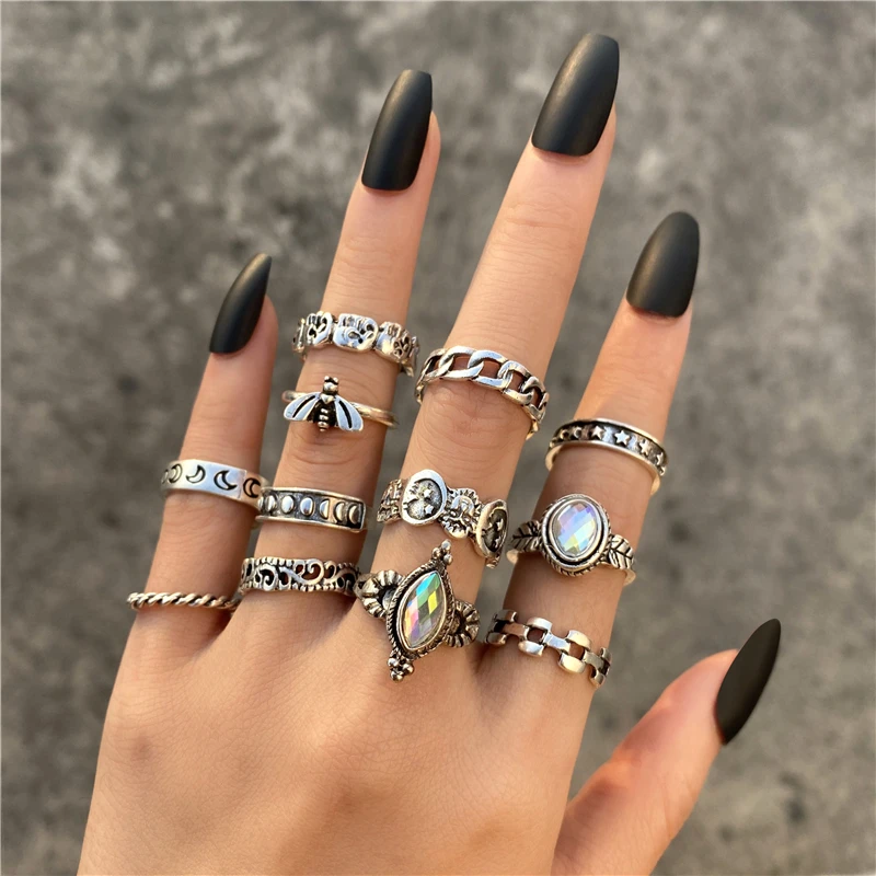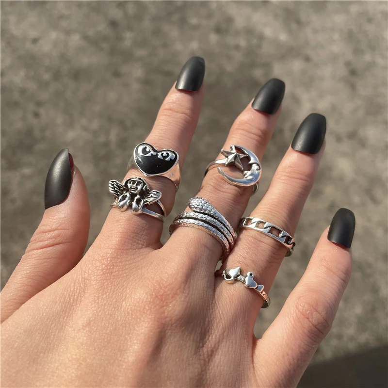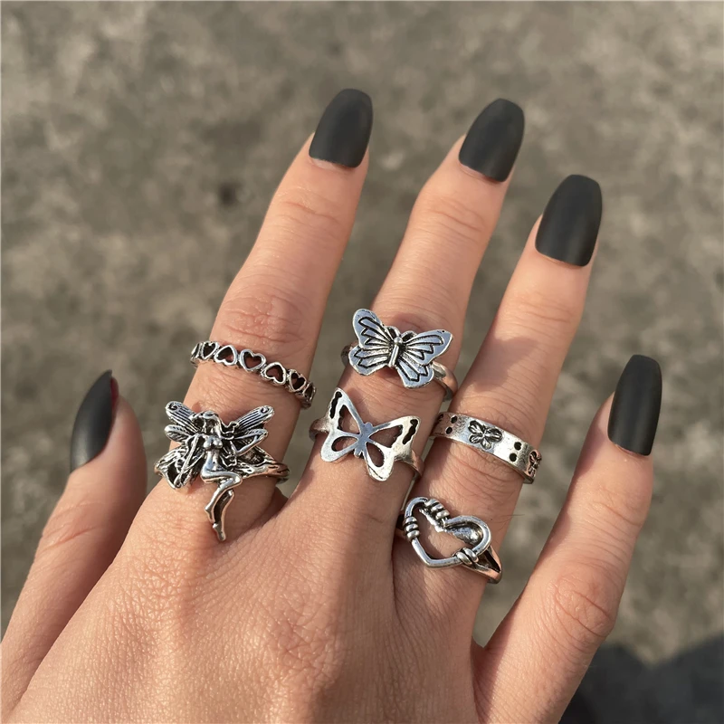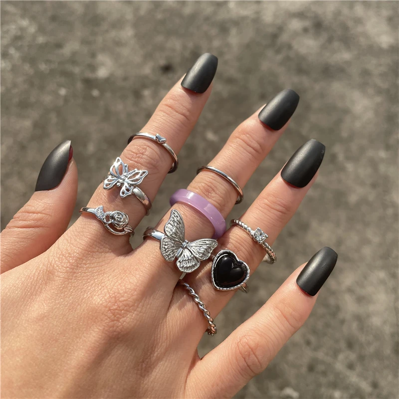 victoria’s vogue Retro Hiphop Snake Skeleton Skull Rings Set For Men Women Punk Silver Plated Butterfly Chain Rings 2022 Trend Jewelry Gifts