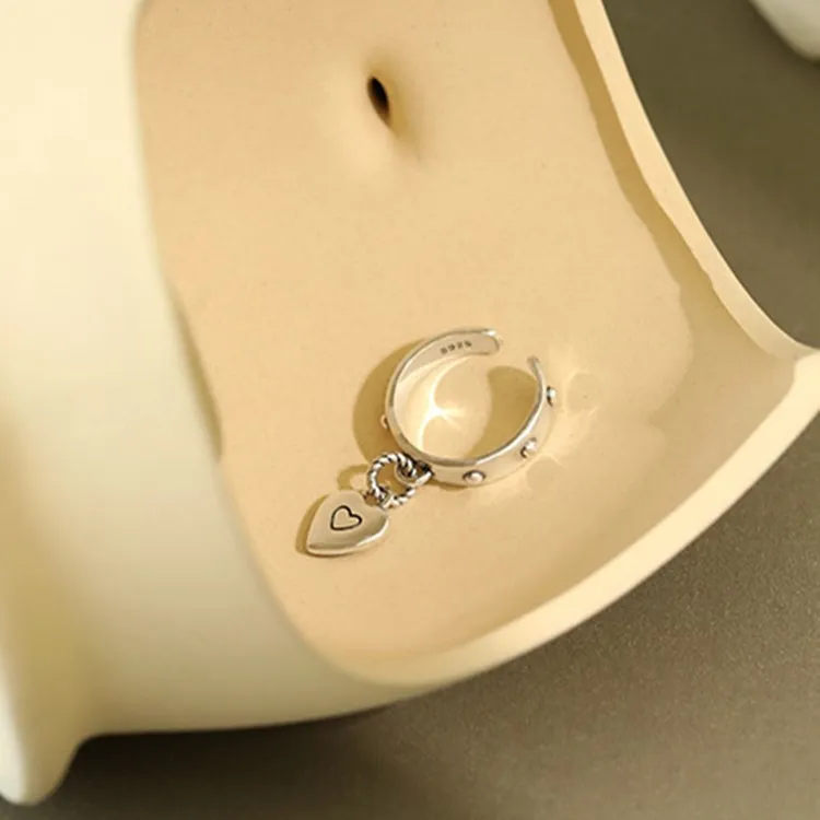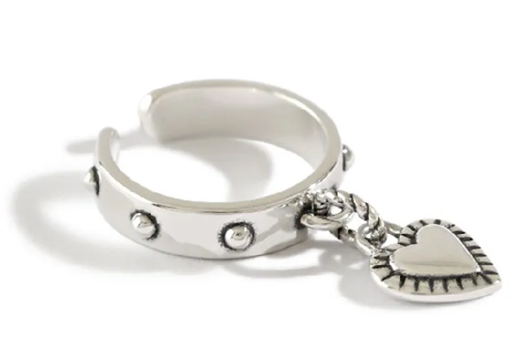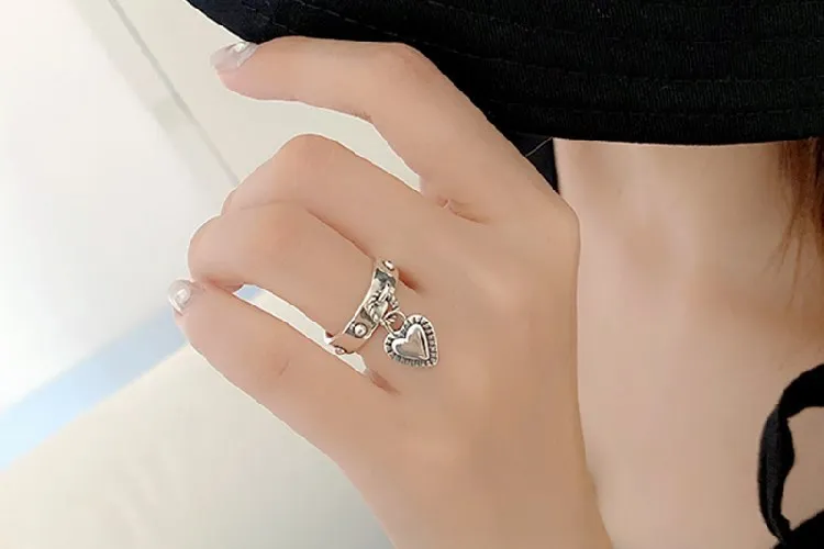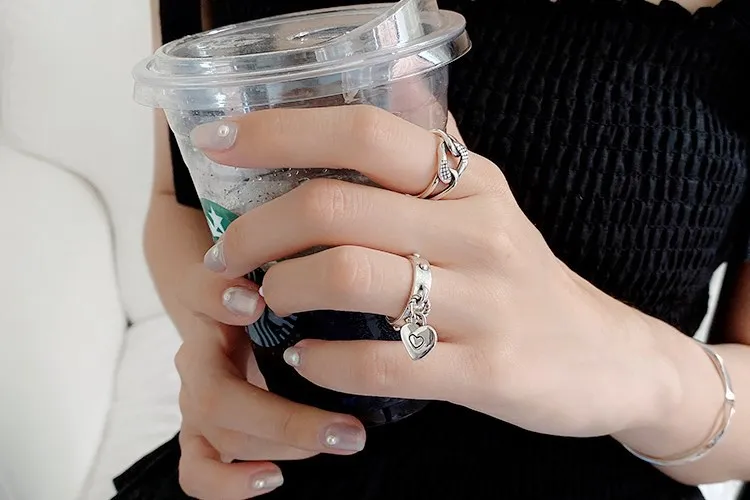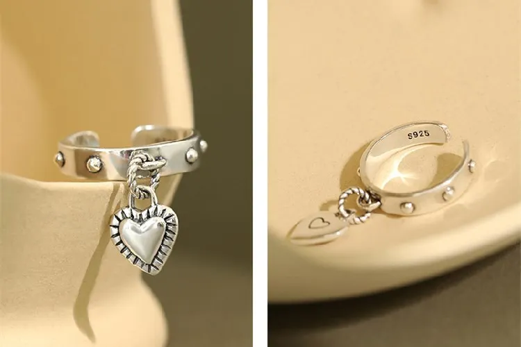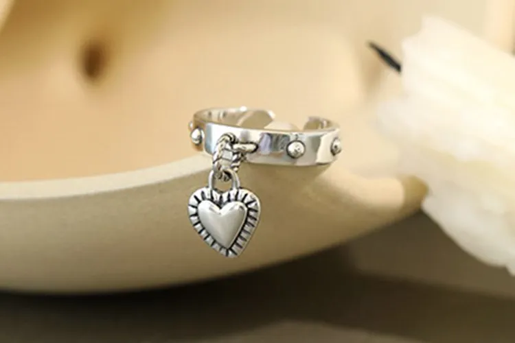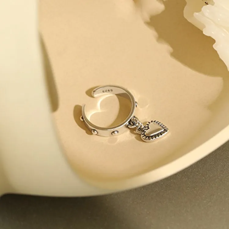 victoria’s vogue Retro Love Simple Personality 925 Sterling Silver Jewelry Tassel Tag Heart Shaped Exquisite Popular Opening Rings