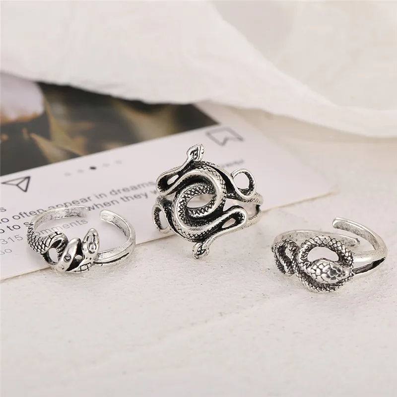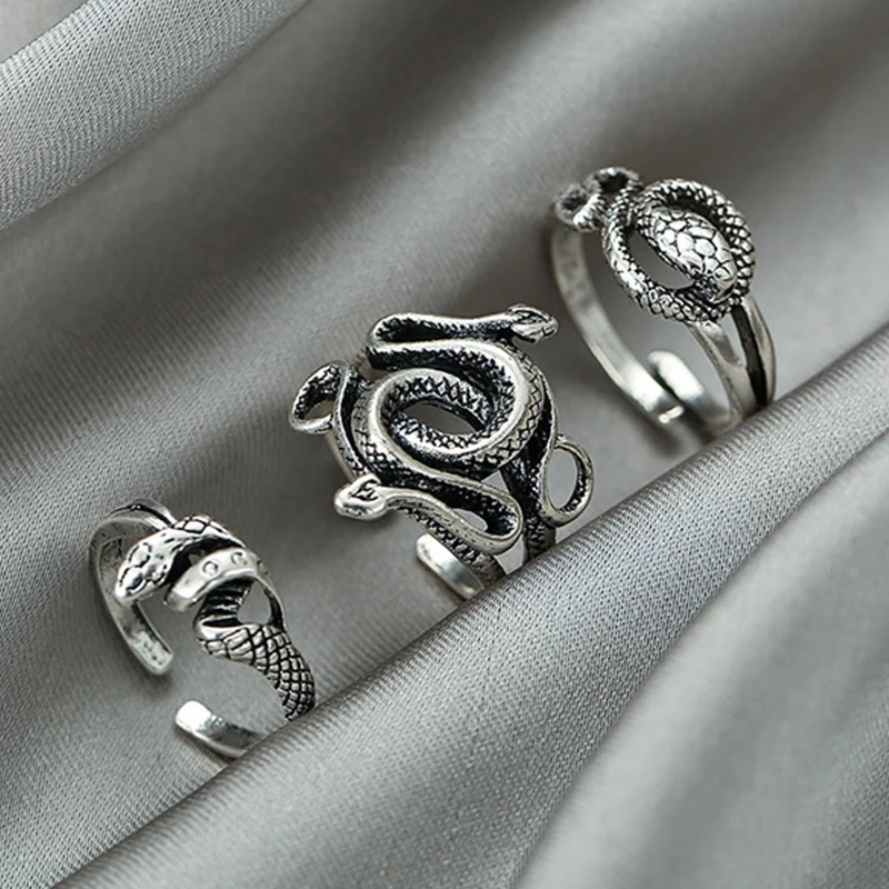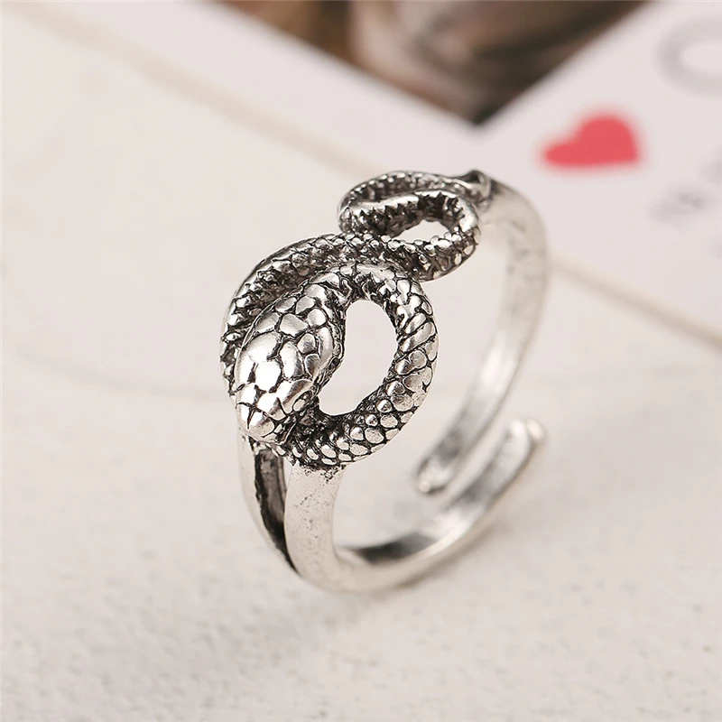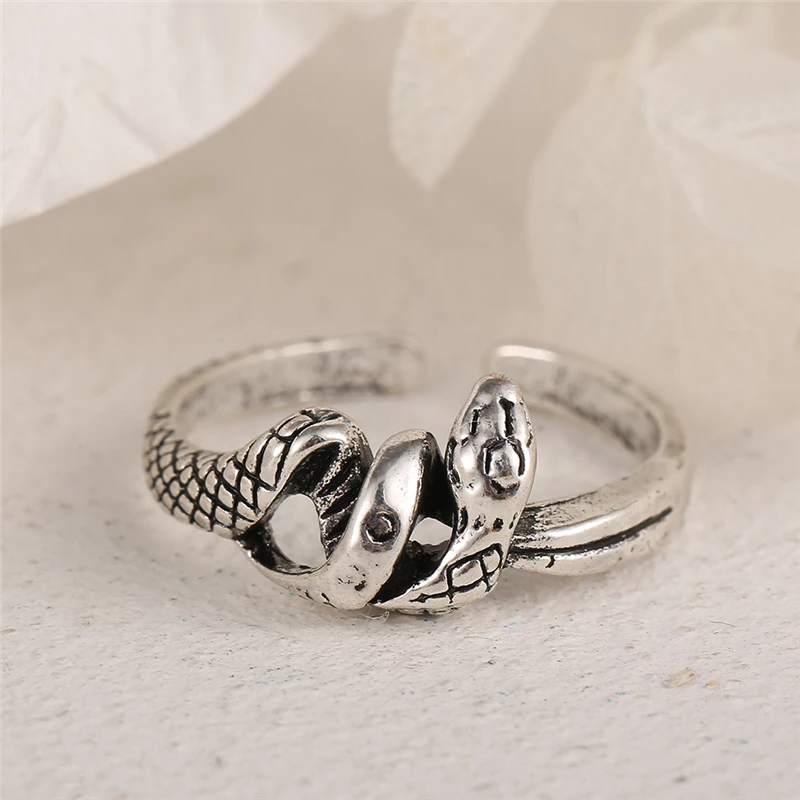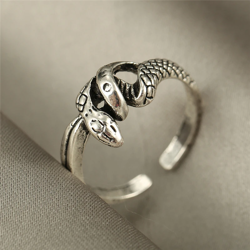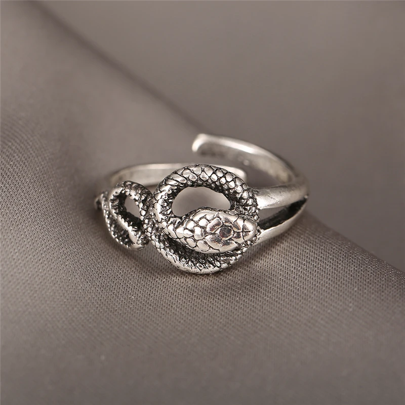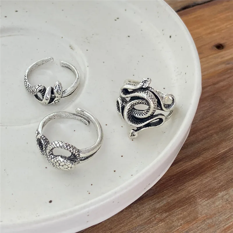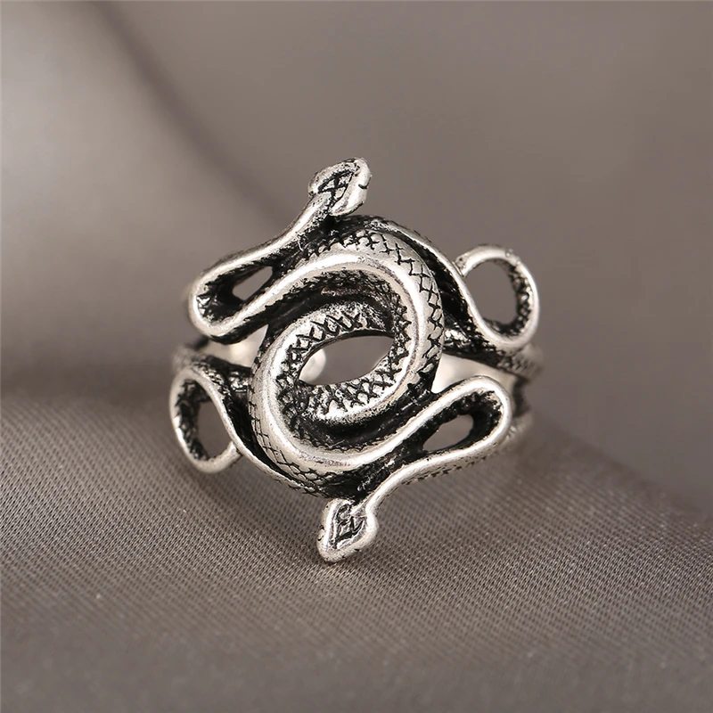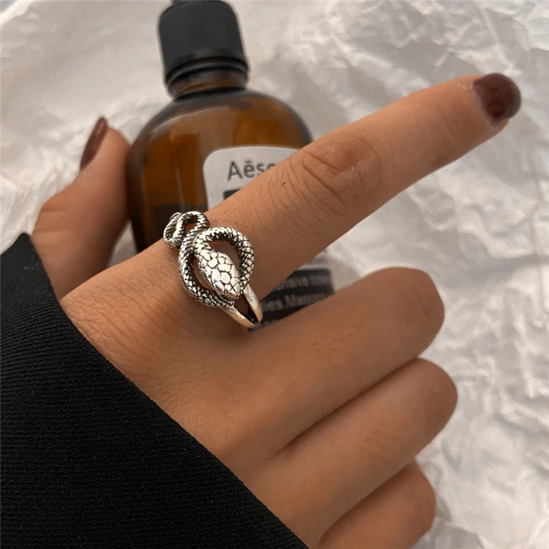 victoria’s vogue Retro Punk Snake Ring For Men Women Exaggerated Antique Silver Color Opening Adjustable Rings Anillo Hombre Bijoux