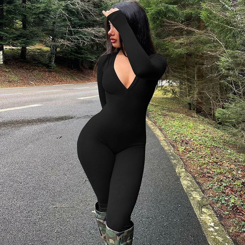 Victoria’s Vogue Ribbed V Neck Long Sleeve Sexy Bodycon Skinny One Piece Jumpsuit Winter Women Casual Streetwear Sport Romper Overalls
