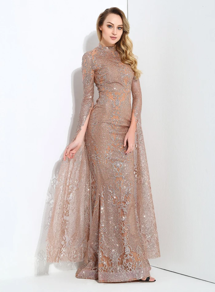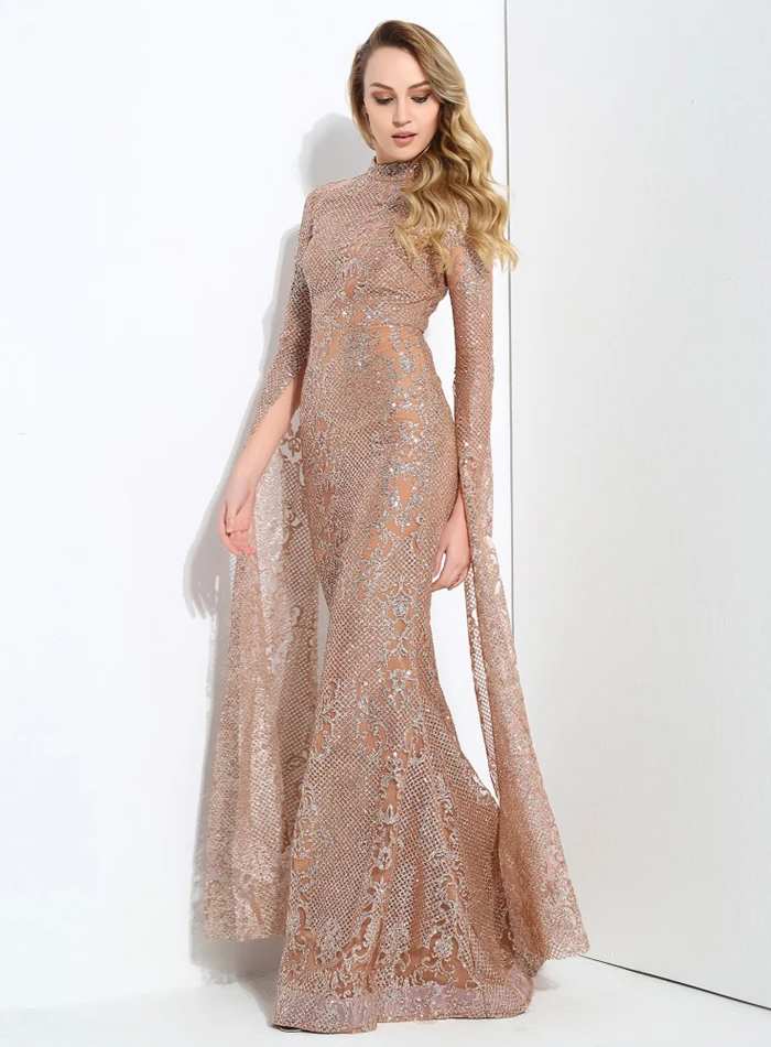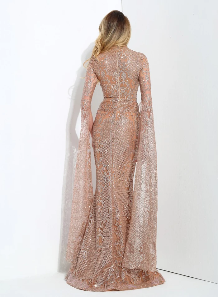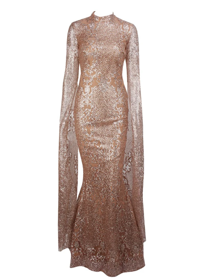 victoria’s vogue Rose Gold Cut Out Speaker Long Sleeve Geometry Glitter Glued Long Dress