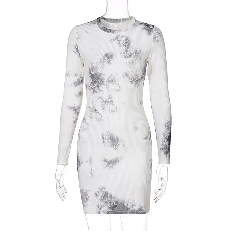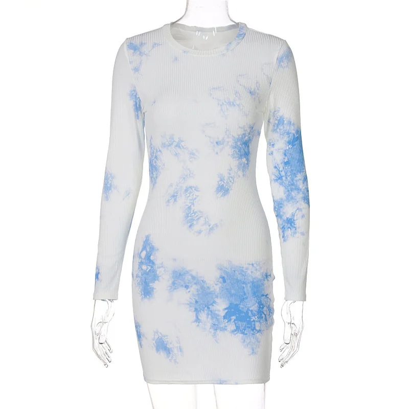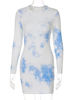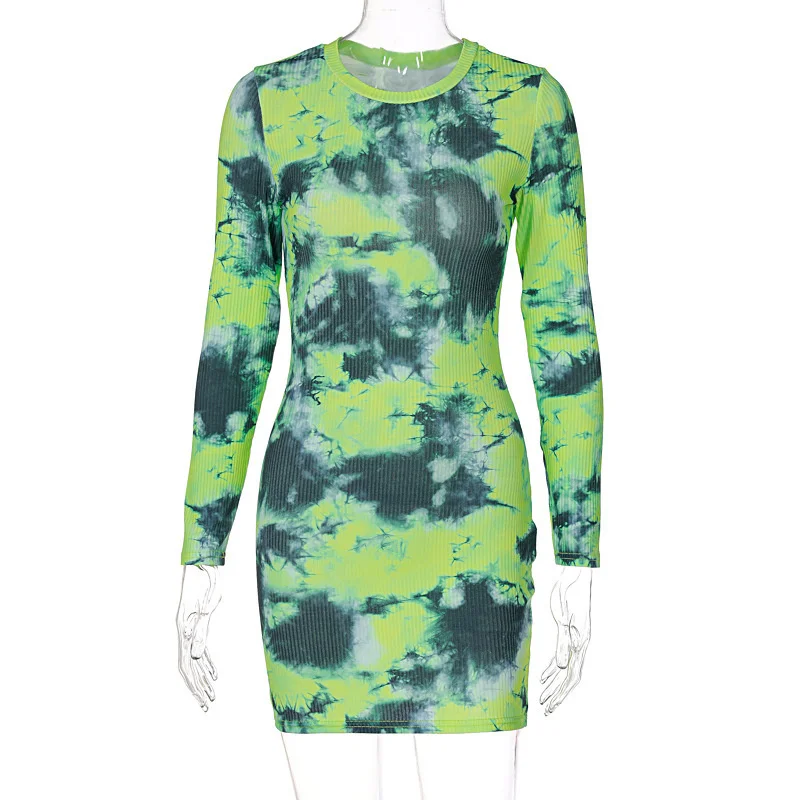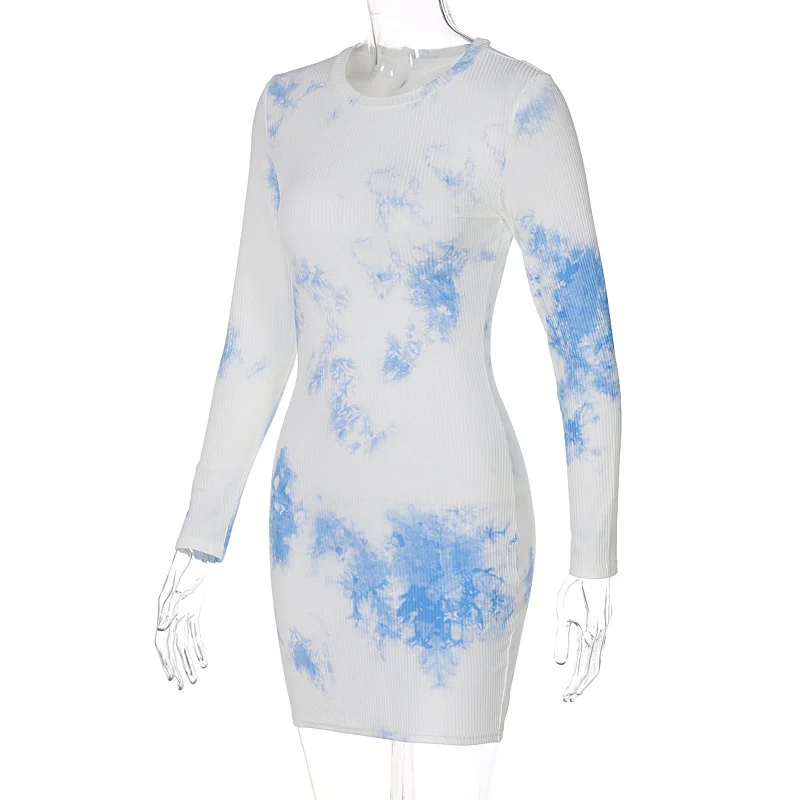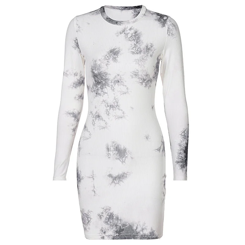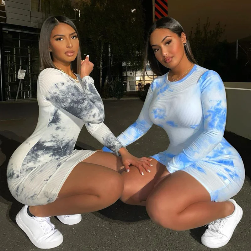 victoria’s vogue Round Collar Tie Dye Print Dress Slim Long Sleeve Casual Elegant Women Clothing Sexy Ladies Bodycon Running Sport Dress