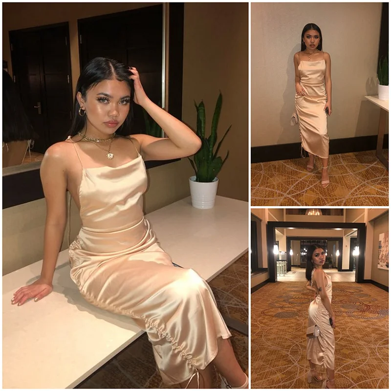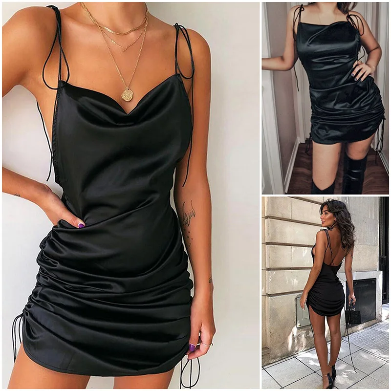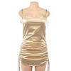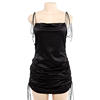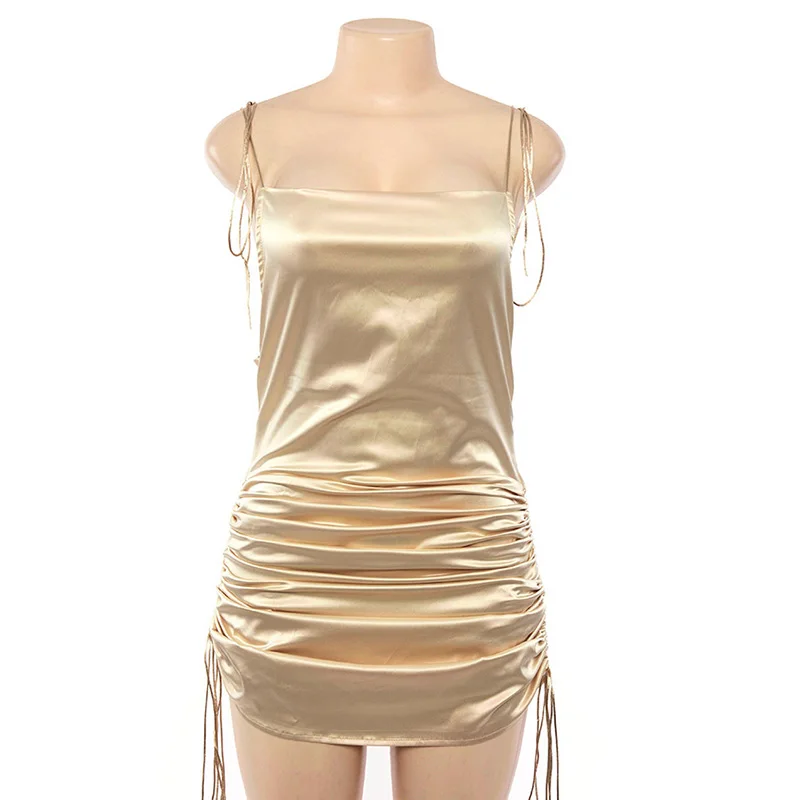 victoria’s vogue Satin Drawstring Ruched Dress For Women Solid Sleeveless Sexy Sling Dresses Ladies Autumn Clubwear Party Beachwear