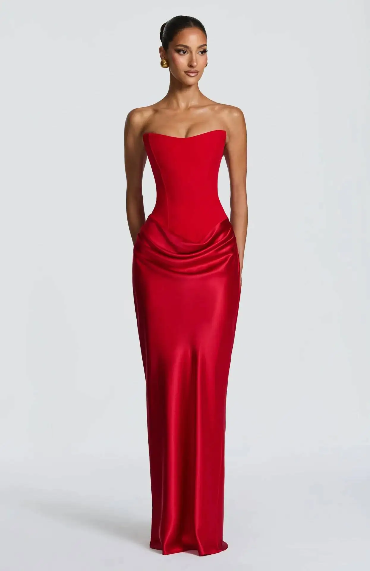 Victoria’s Vogue Satin Pleated Strapless Sleeveless Sexy Dress Women Elegant 2026 Party Dress Backless Maxi Long Summer Dress Vestidos