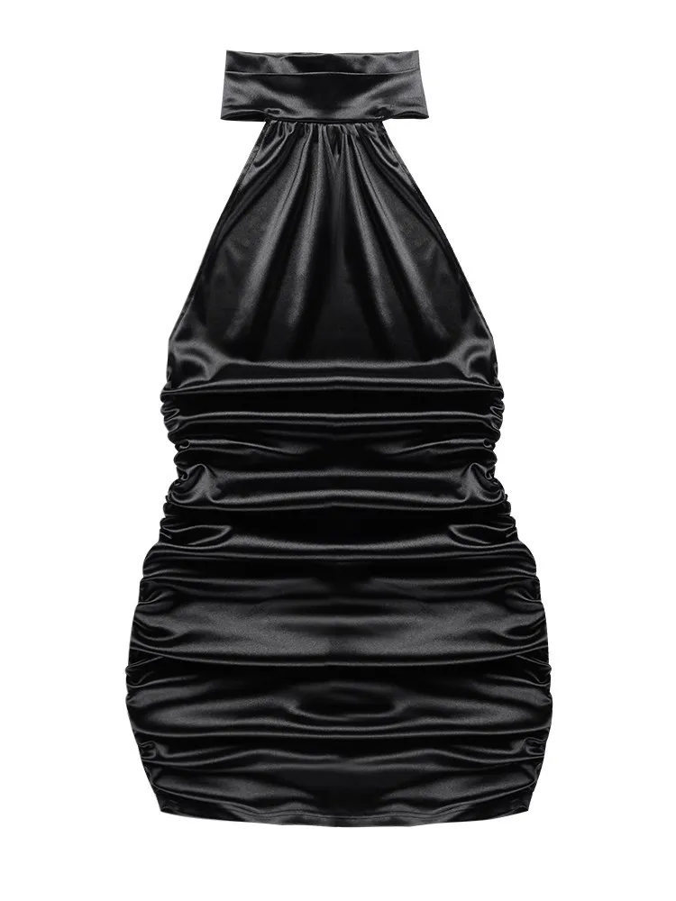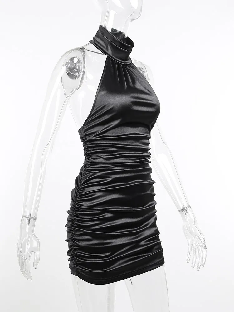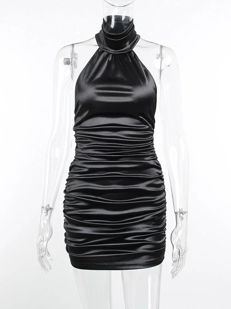 victoria’s vogue Satin Ruched Women Halter Mini Dress Backless Sleeveless Sexy Elegant Party Prom Nightclub Streetwear Female Clothing