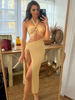 Victoria’s Vogue Satin Solid Halter Backless Draped Hollow Out Shirring Bandage Slim Maxi Prom Dress Sexy Summer Elegant Outfit Party