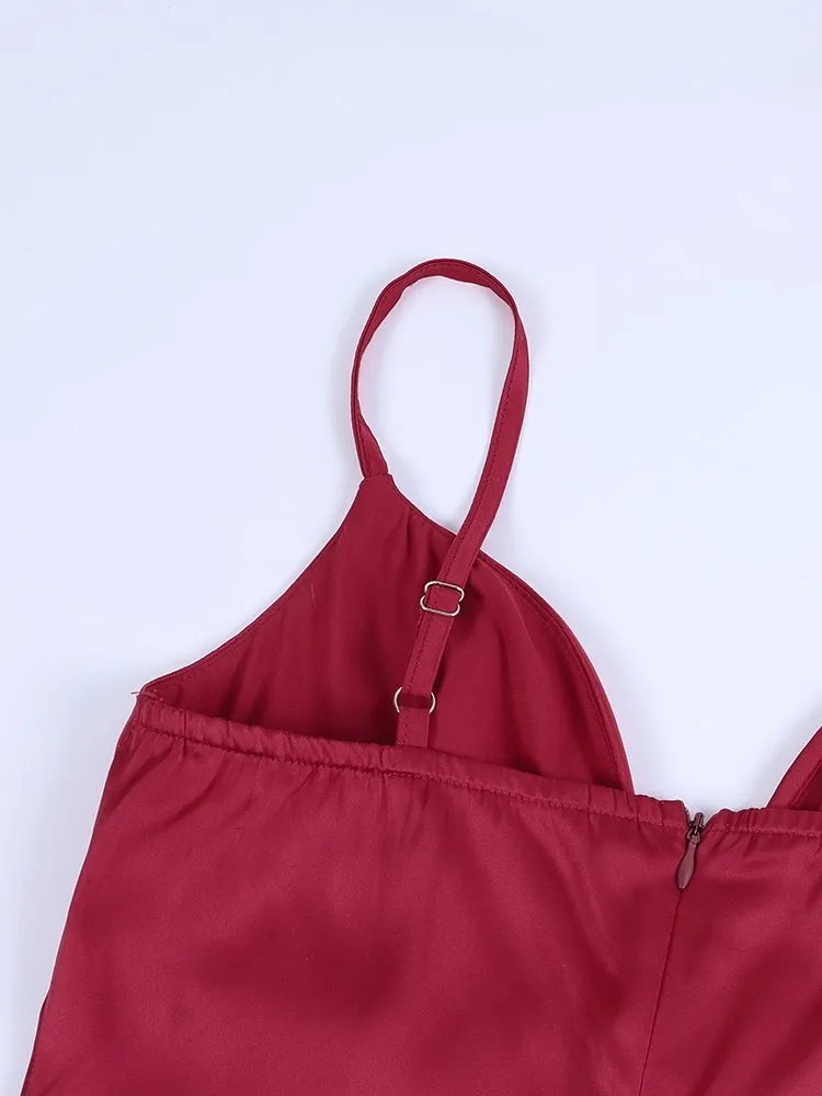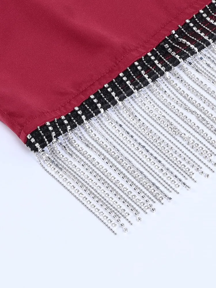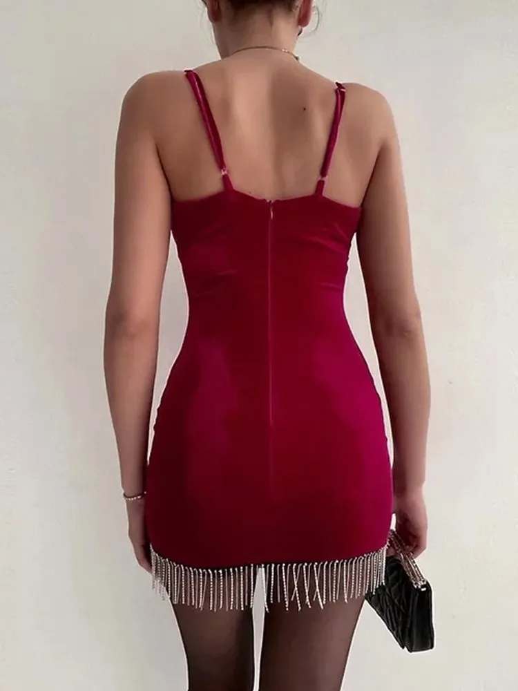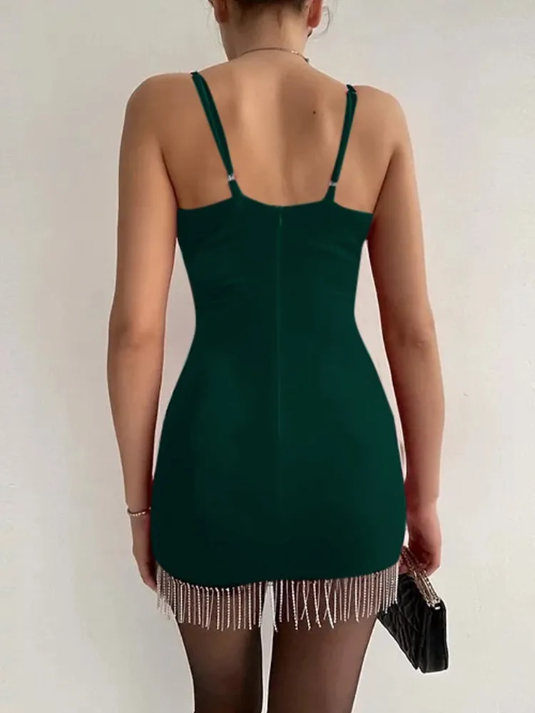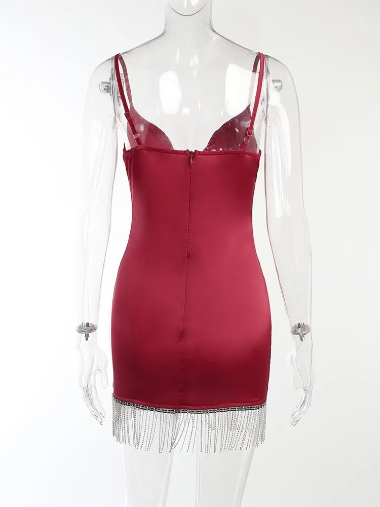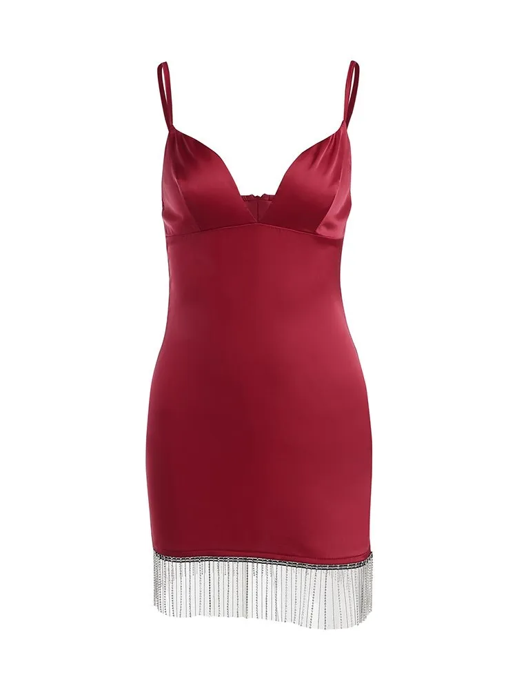 victoria’s vogue Satin Women Tassel Cami Mini Dress Sleeveless Deep V Neck Summer Bodycon Sexy Fashion Party Nightclub Dress