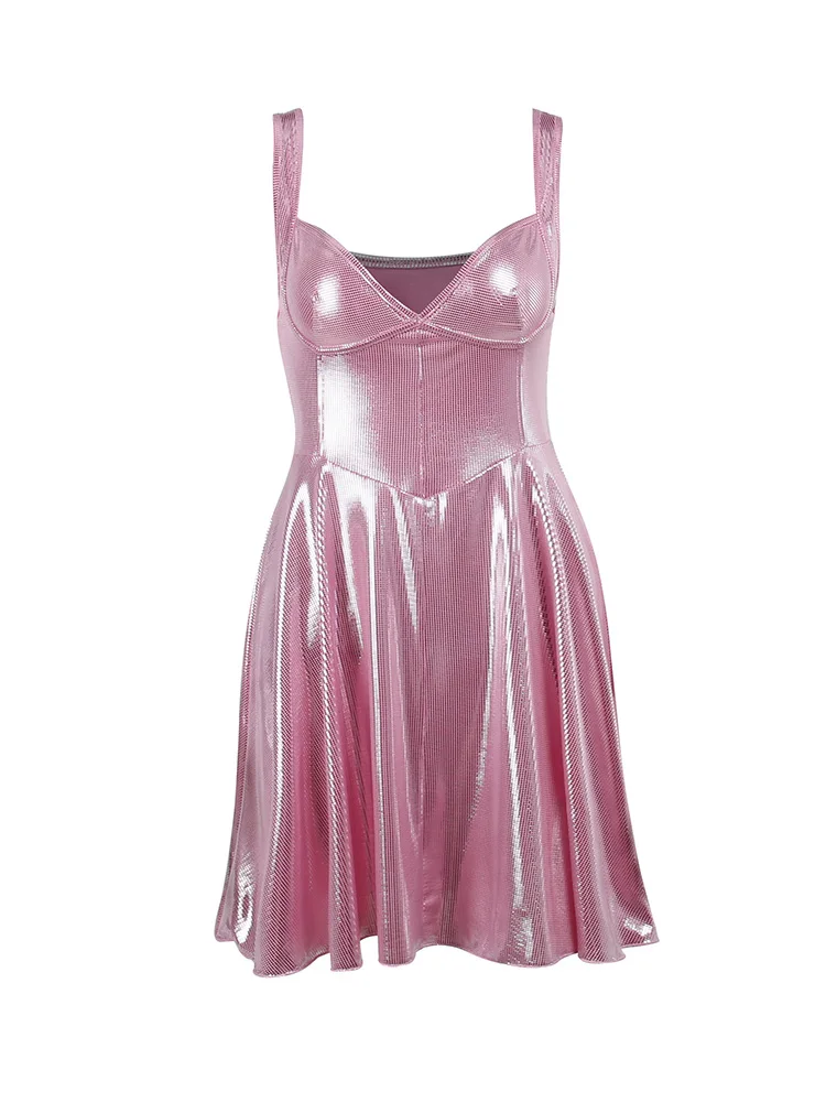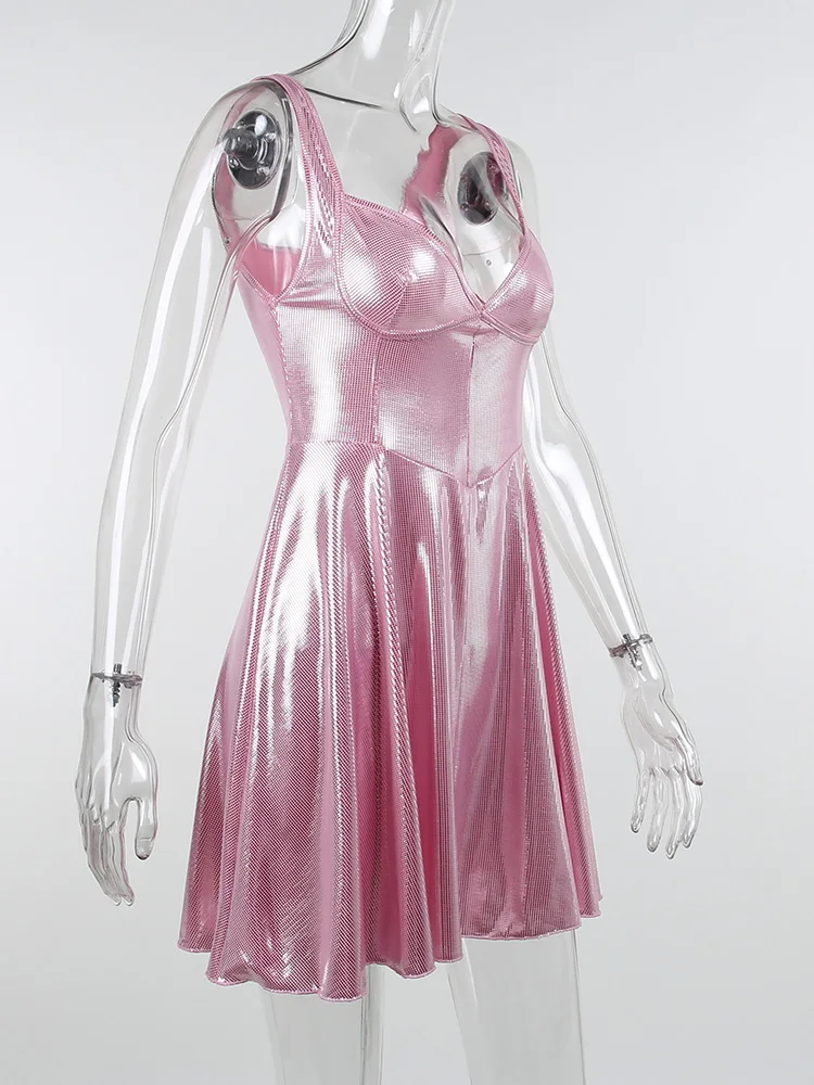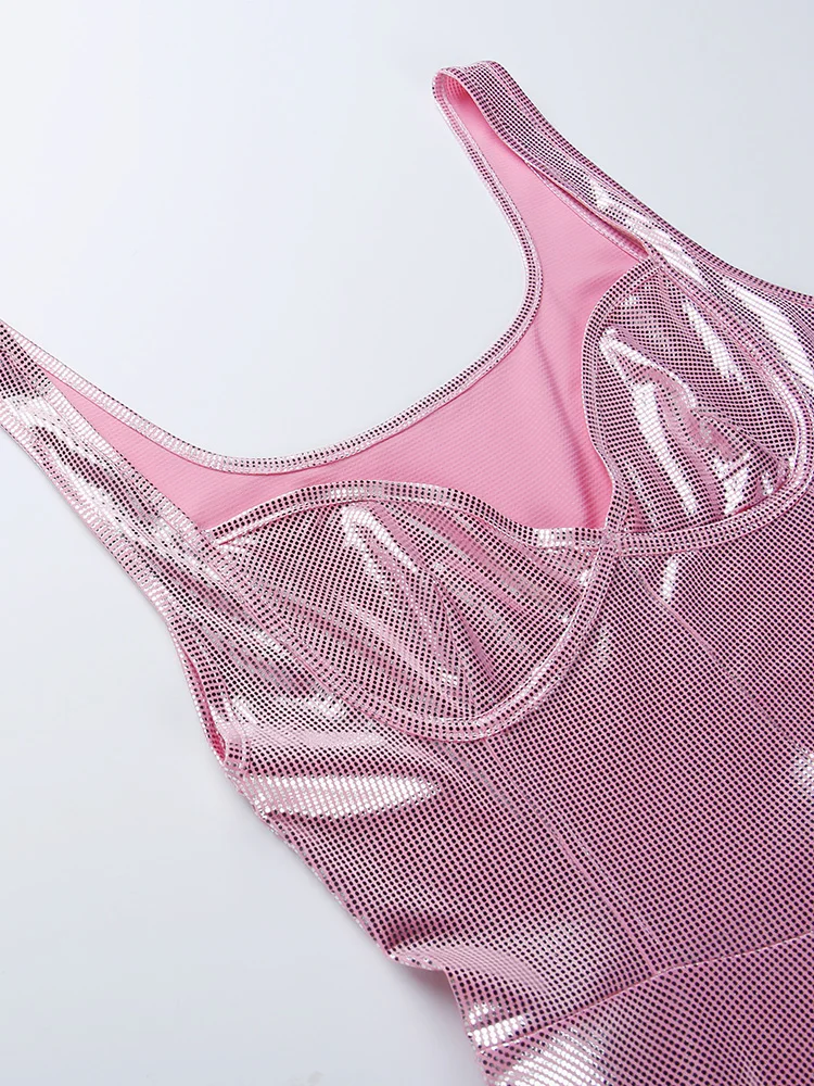 victoria’s vogue Sequin Mini Dress For Woman Y2K Bling Draped Sleeveless Bodycon Pink Folds Nightclub Partywear Sexy Corset Dress