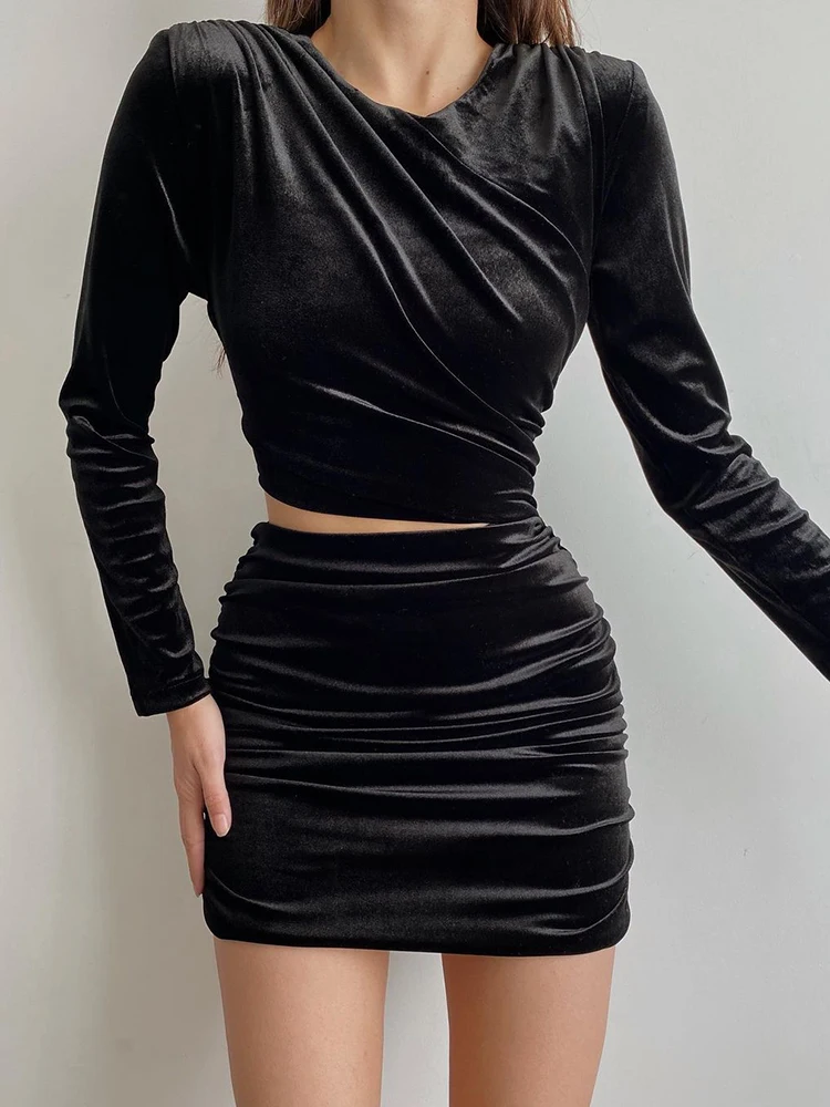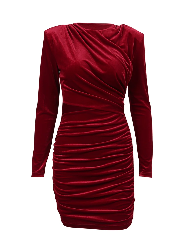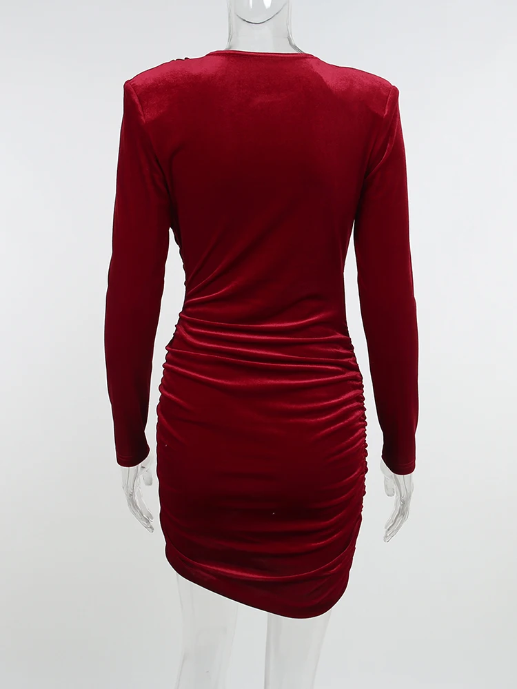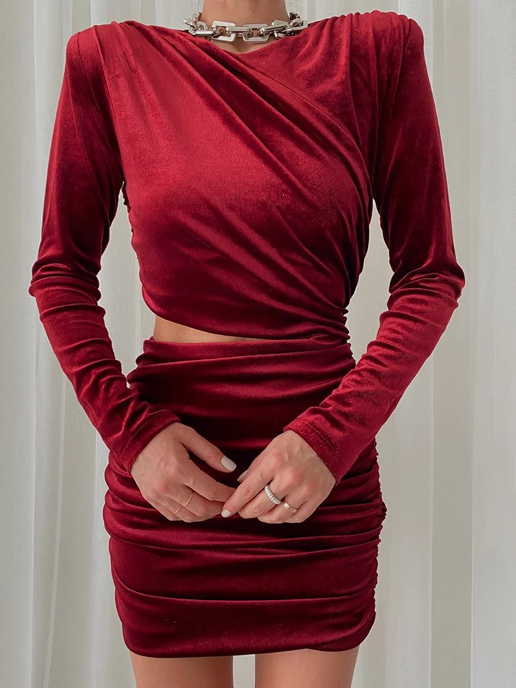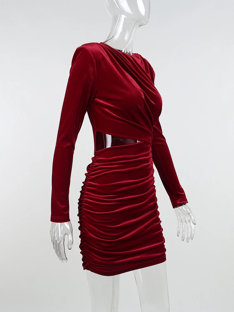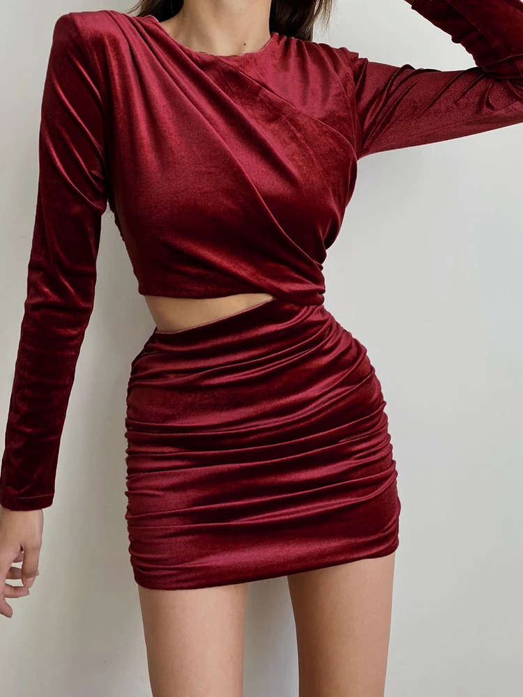victoria’s vogue set Bodycon Mini Dress Ruched Sexy Hollow Out Shrug Waist Women Long Sleeve O Neck Red Dresses For Woman Fall 2021