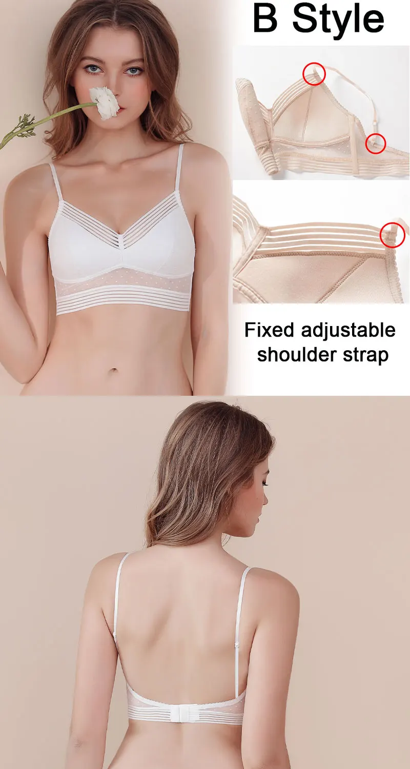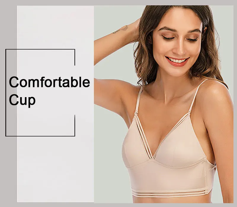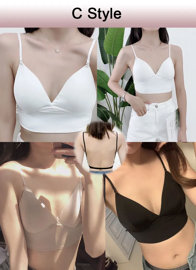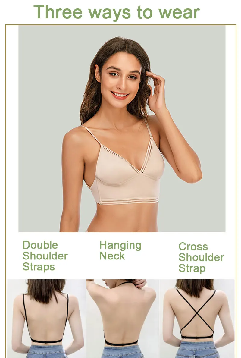 Victoria’s Vogue Sexy Backless Bra Lace Deep U Low Back Bralette Thin Cup Brassiere Halter Soft Seamless Elastic Tank Tops