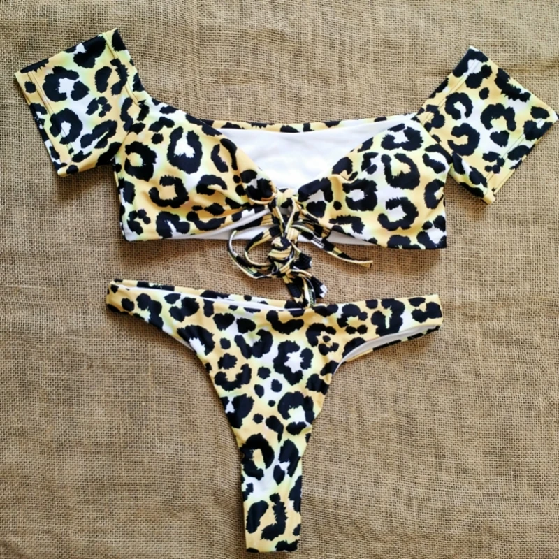 Victoria’s Vogue Sexy Bikini Set Women Brazilian Padded Push Up Swimwear Leopard Sling Bathing Suit G String Swimsuit Beachwear