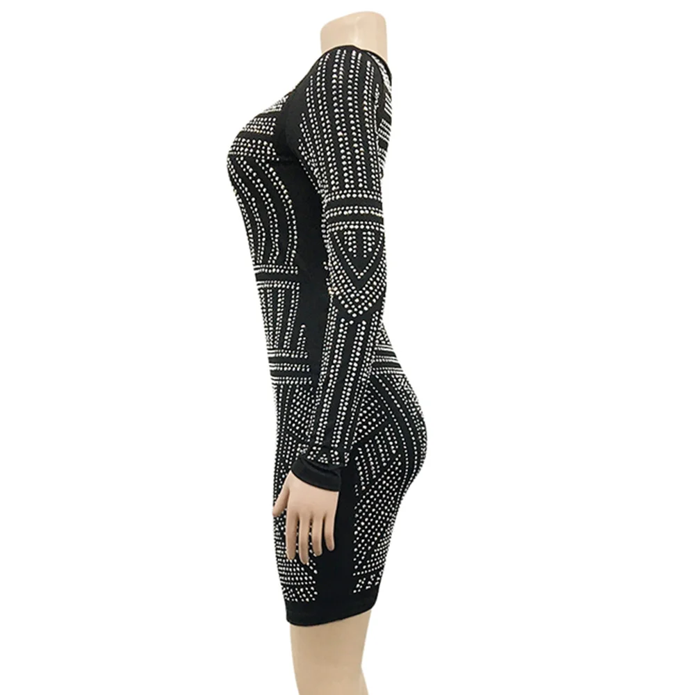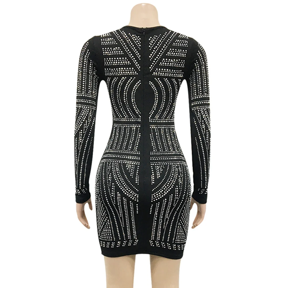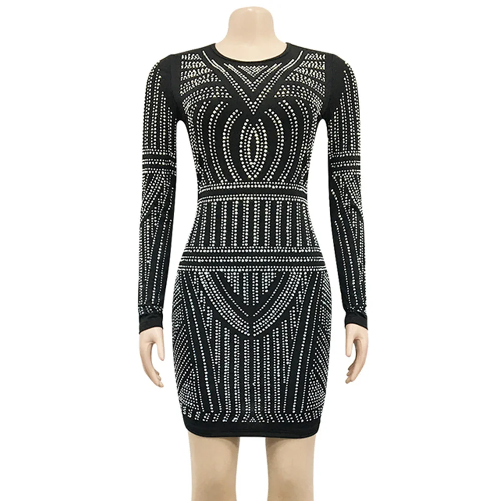 victoria’s vogue Sexy black Rhinestone summer mini dress women bodycon Long sleeve glitter night club party dress ladies evening dresses vestidos |