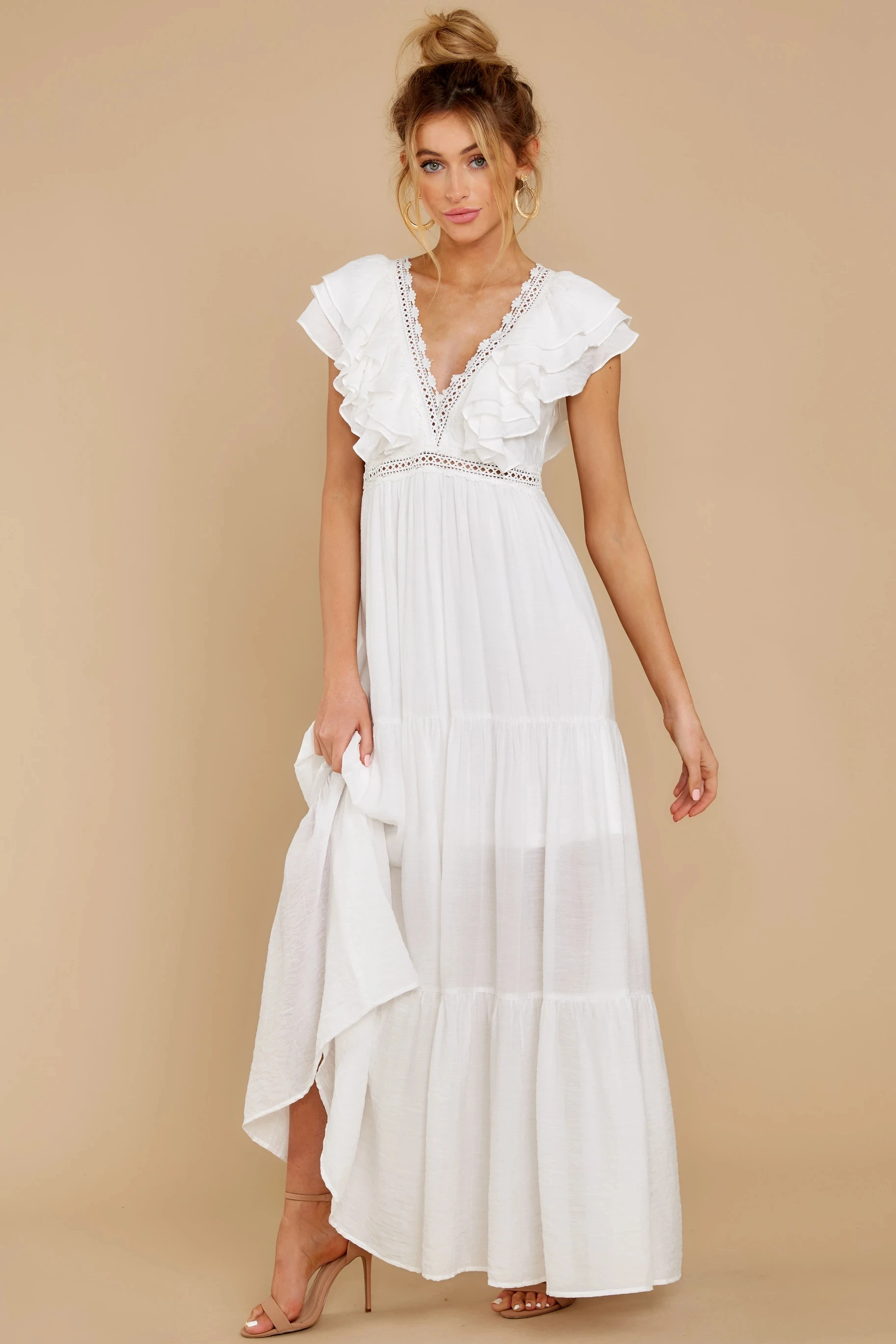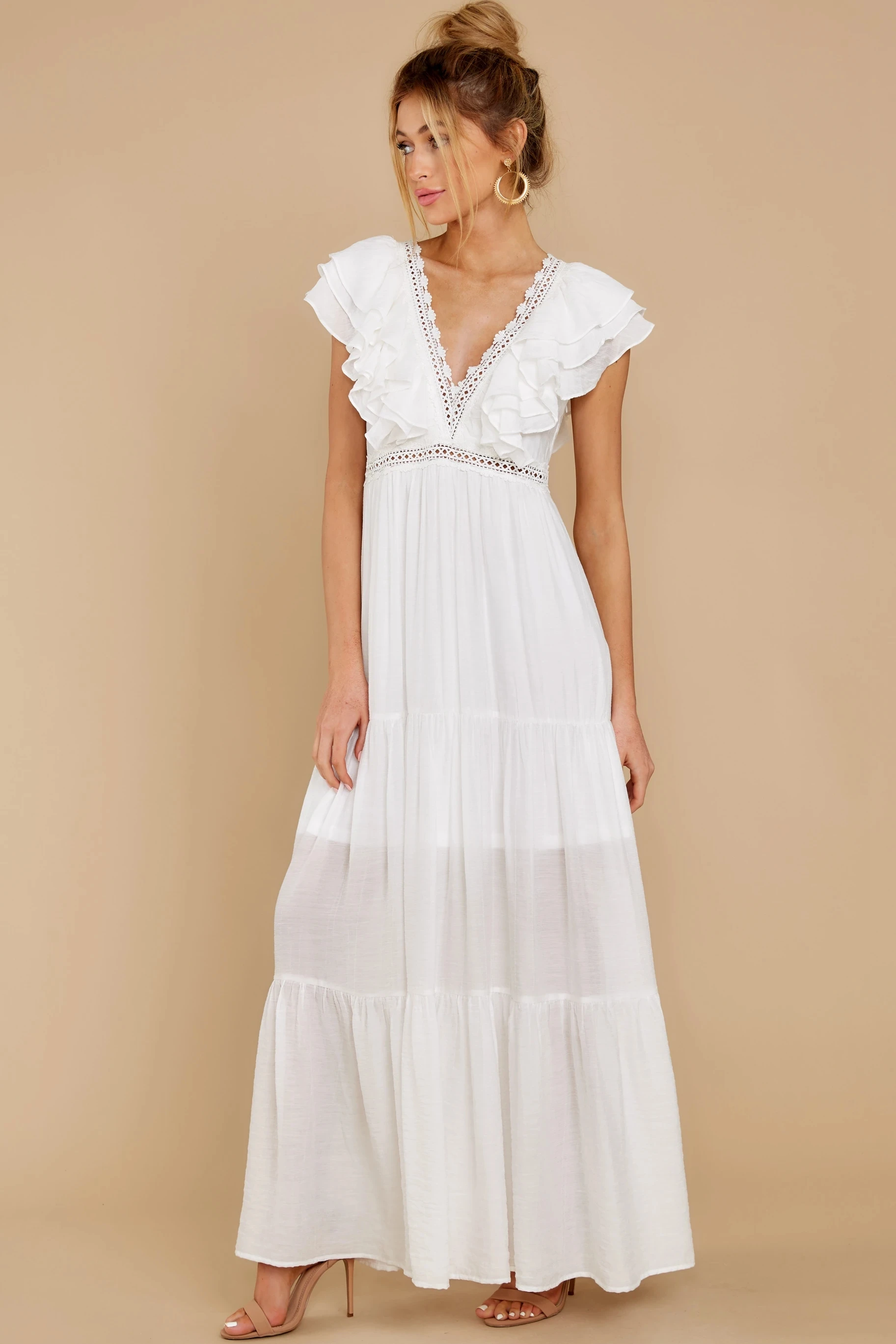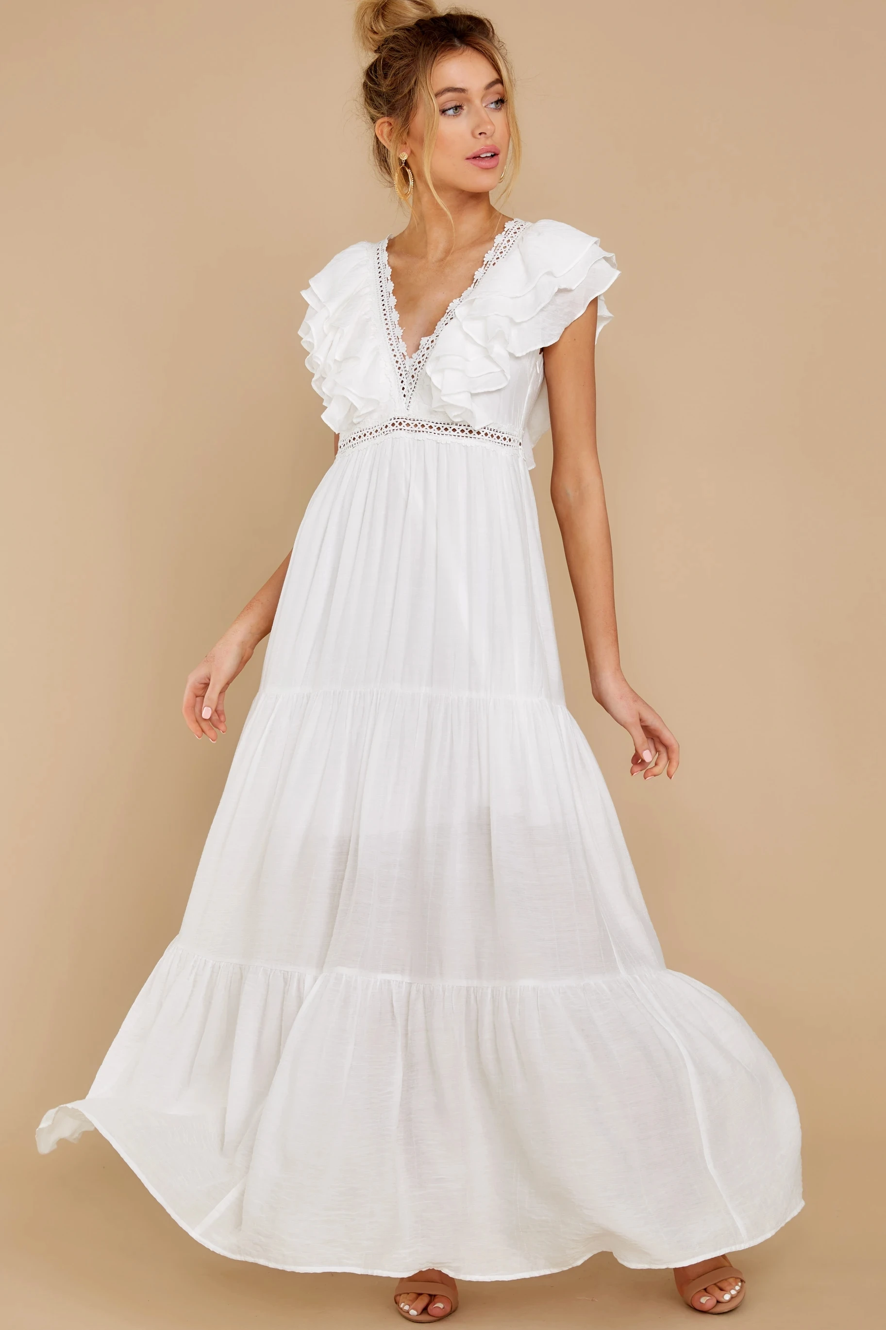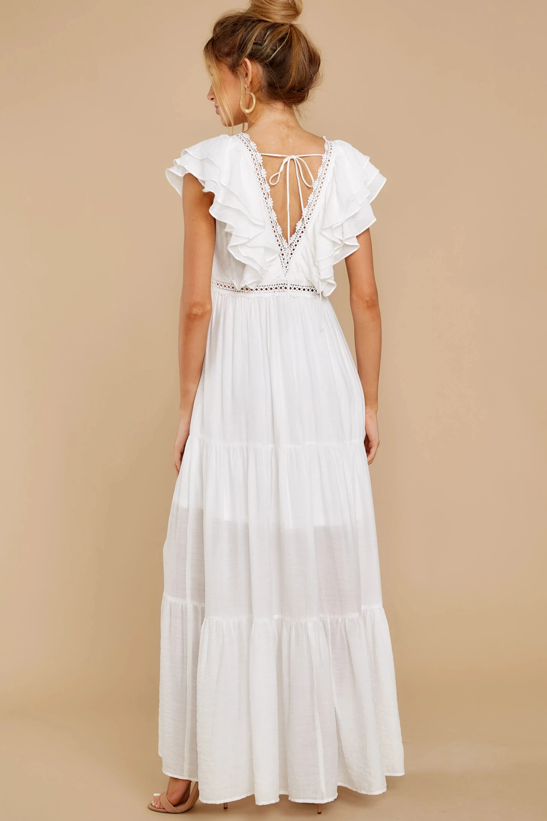 victoria’s vogue Sexy Deep V-neck Butterfly Sleeve Maxi Dress White High Waist Mid-length A-line Dress Casual Women Summer Holiday Dress