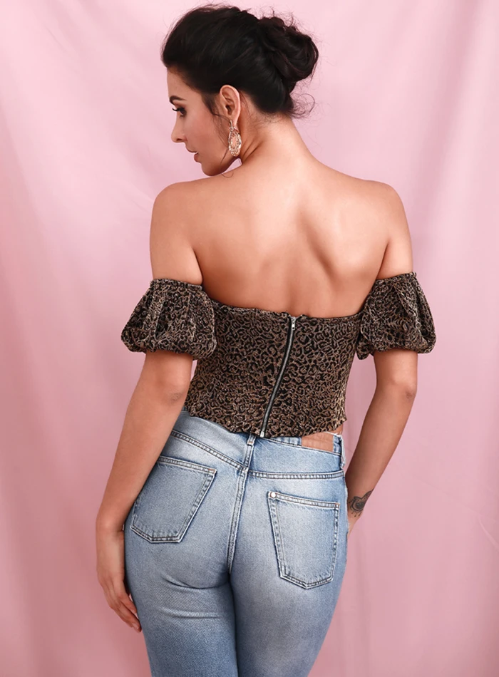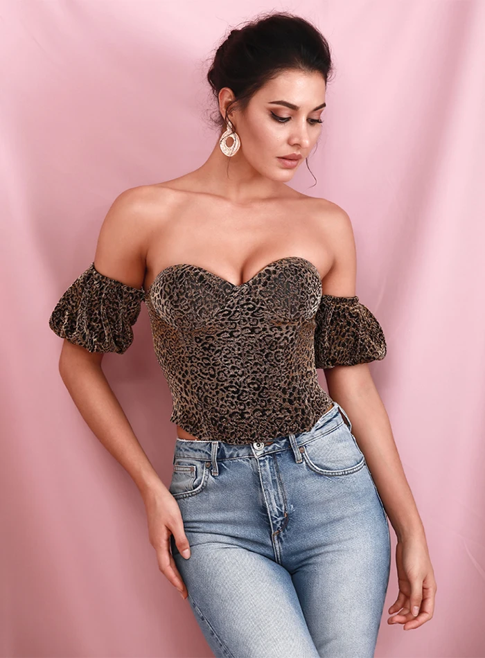 victoria’s vogue Sexy Gold Tube Top Removes Sleeves Leopard Material Top (With Support)