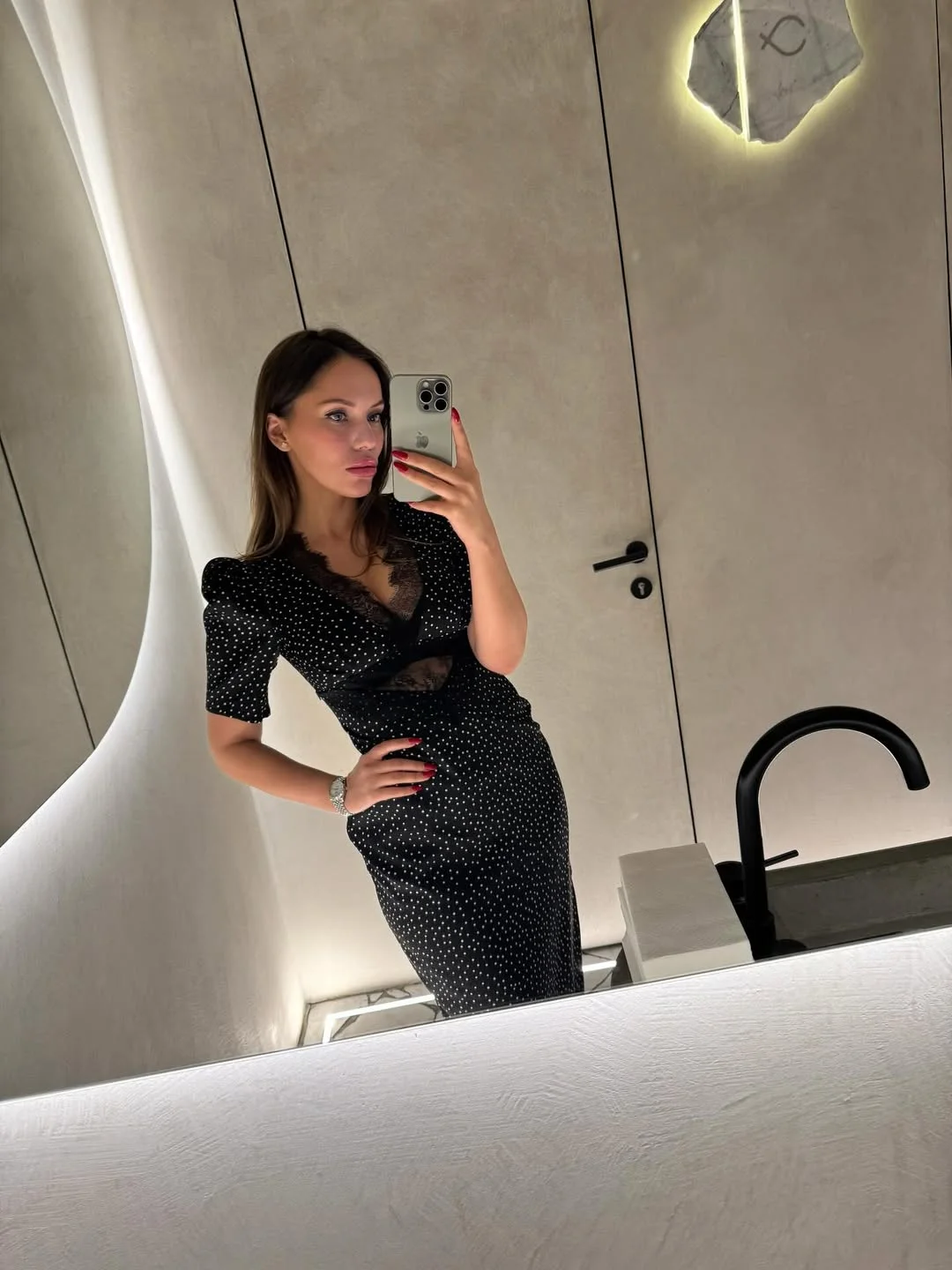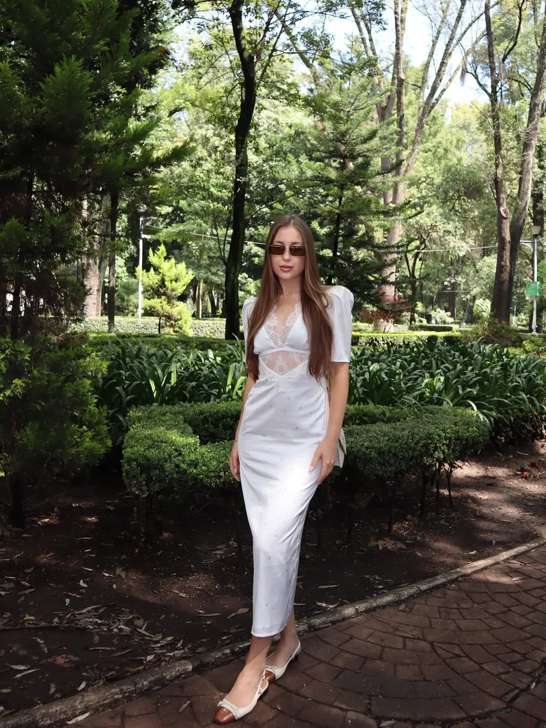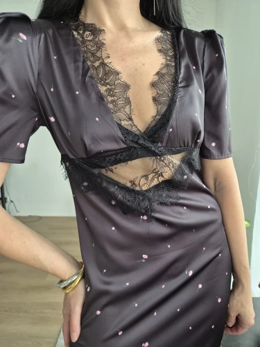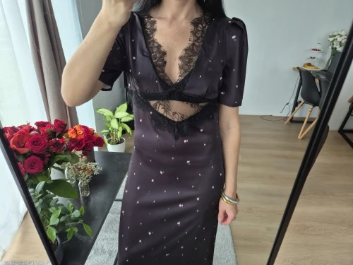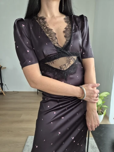 Сукня дуже вдалої посадки — красиво підкреслює фігуру, силует виглядає жіночно і струнко. Ззаду є розріз, завдяки чому в ній зручно ходити. Мереживо додає особливого шарму та робить образ більш ніжним і ефектним. Матеріал — поліестер, але досить приємний до тіла, без відчуття «дешевої» тканини. Єдине — мені вона виявилася завеликою, тому зверніть увагу на розмірну сітку. В цілому сукня дуже гарна. Мої параметри: Зріст 162, ОГ/ 82, ОТ/ 68, ОБ/ 91 Стопа 24 см.