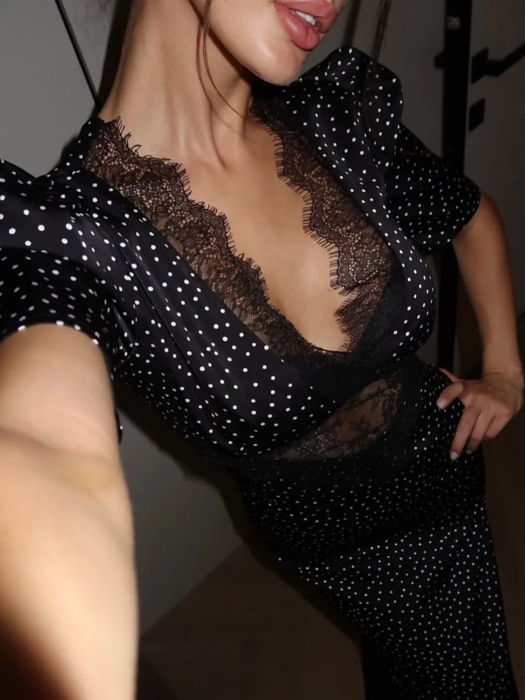 Victoria’s Vogue Sexy Hollow Lace Dress Women’s Fashion Short Sleeve Elegant High Waist Slim Print Dress Summer Party Club Clothes Female