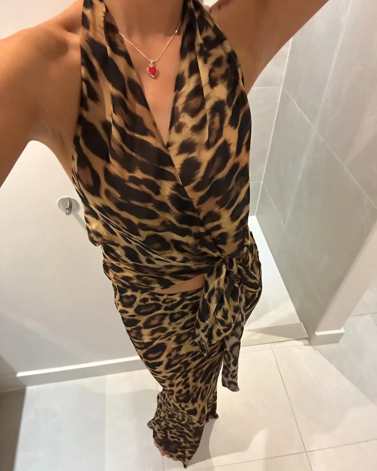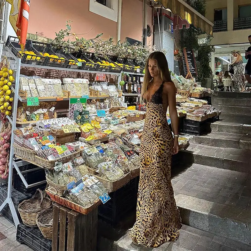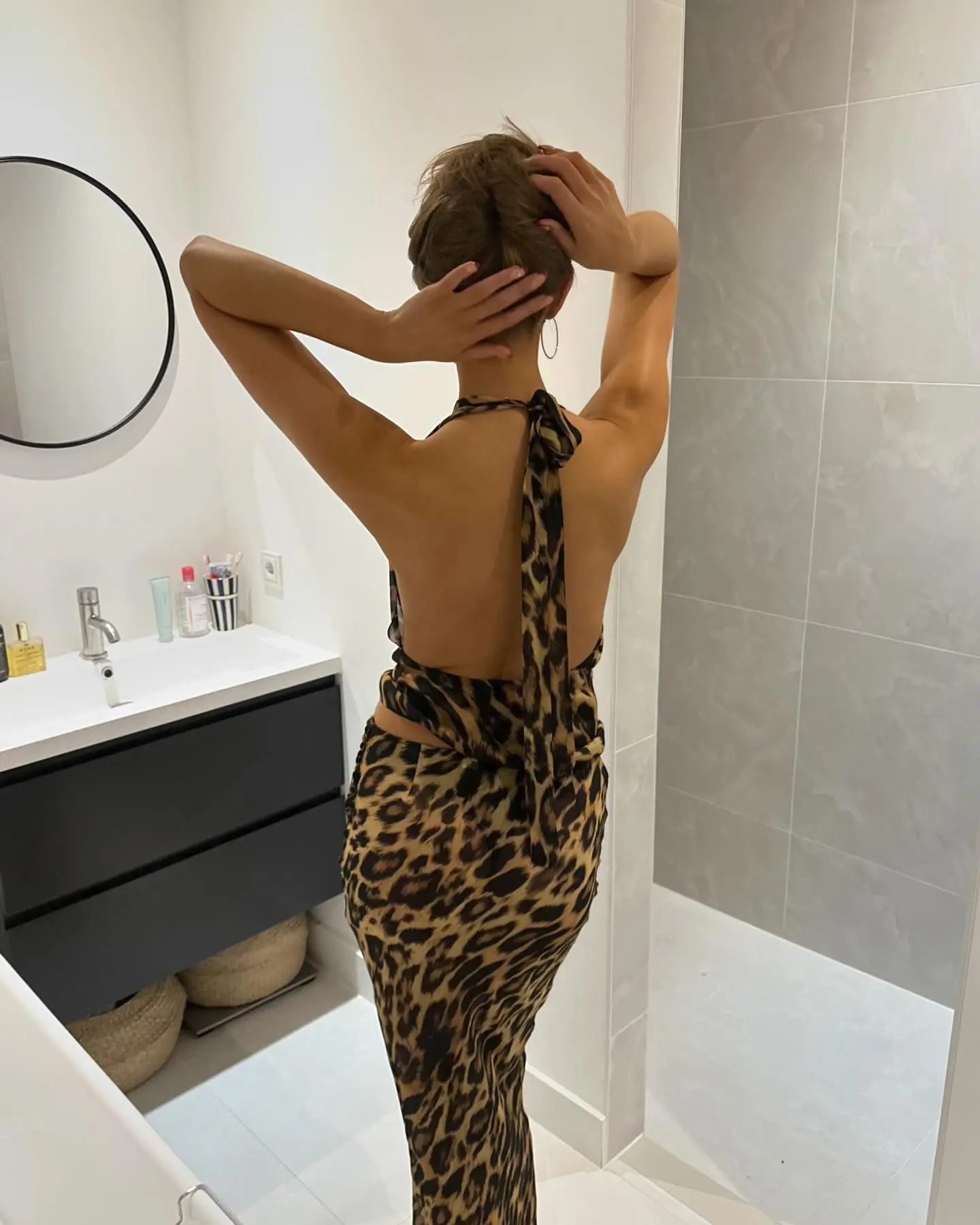 Victoria’s Vogue Sexy Leopard Print Lace Patchwork Maxi Dress Women Fashion V Neck Backless Long Dresses Spring Summer Female Holiday Vestidos
