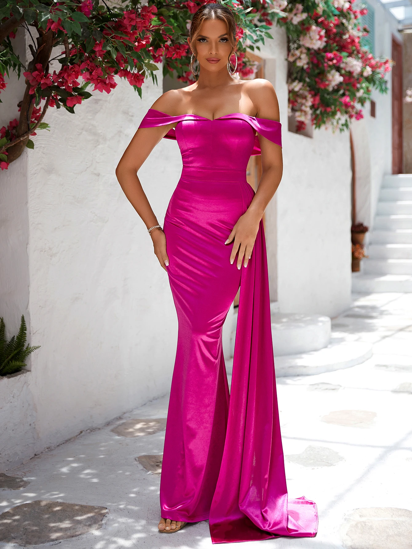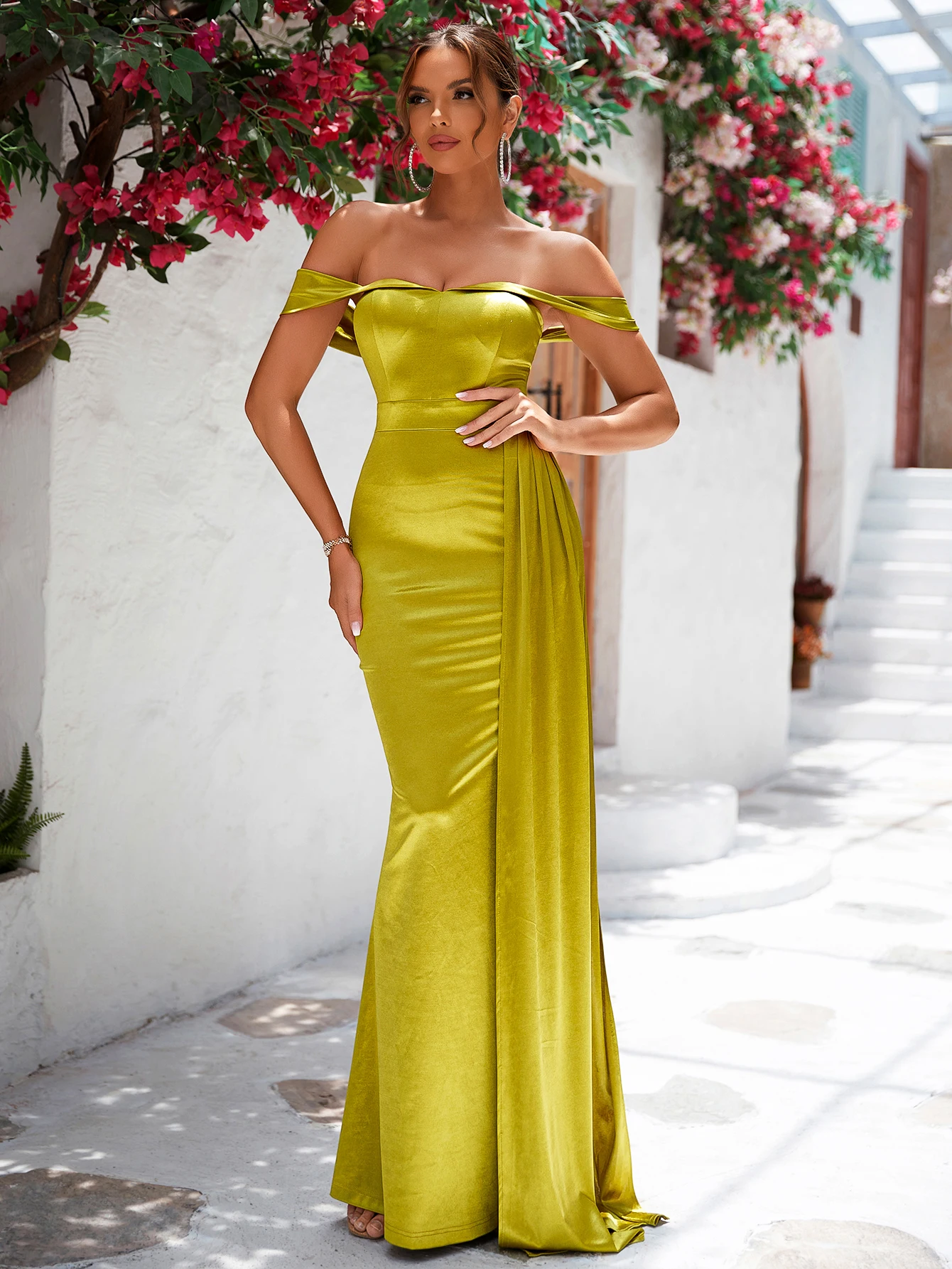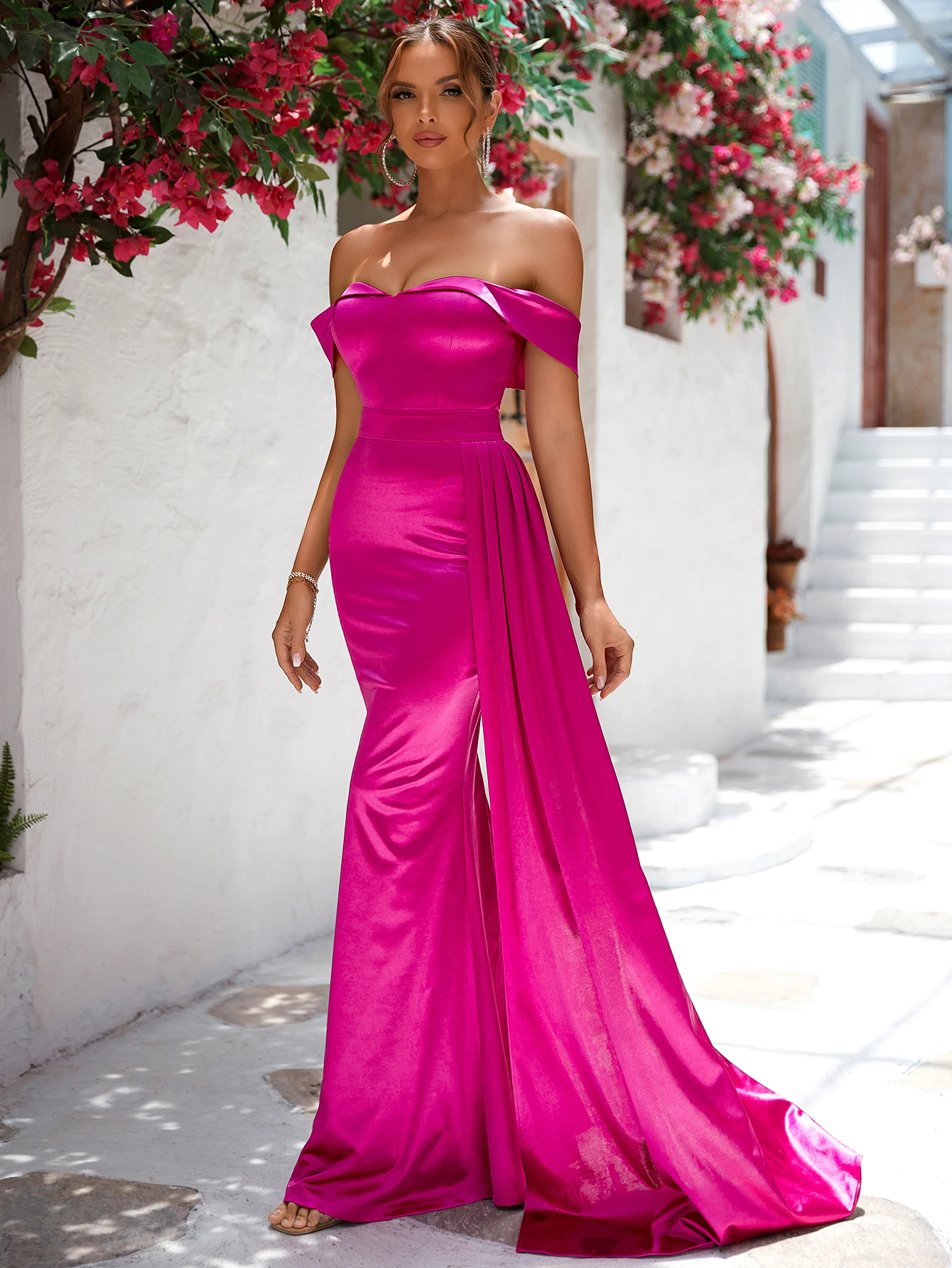 Victoria’s Vogue Sexy One Line Neck Skinny Fit Fishtail Evening Party Maxi Dress