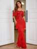 Victoria’s Vogue Sexy One Line Neck Slim Fit Sequin Fishtail Evening Party Maxi Dress