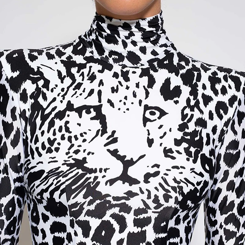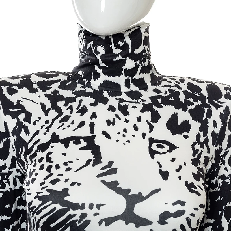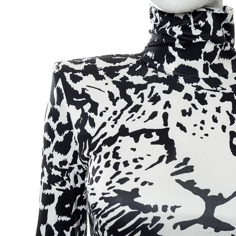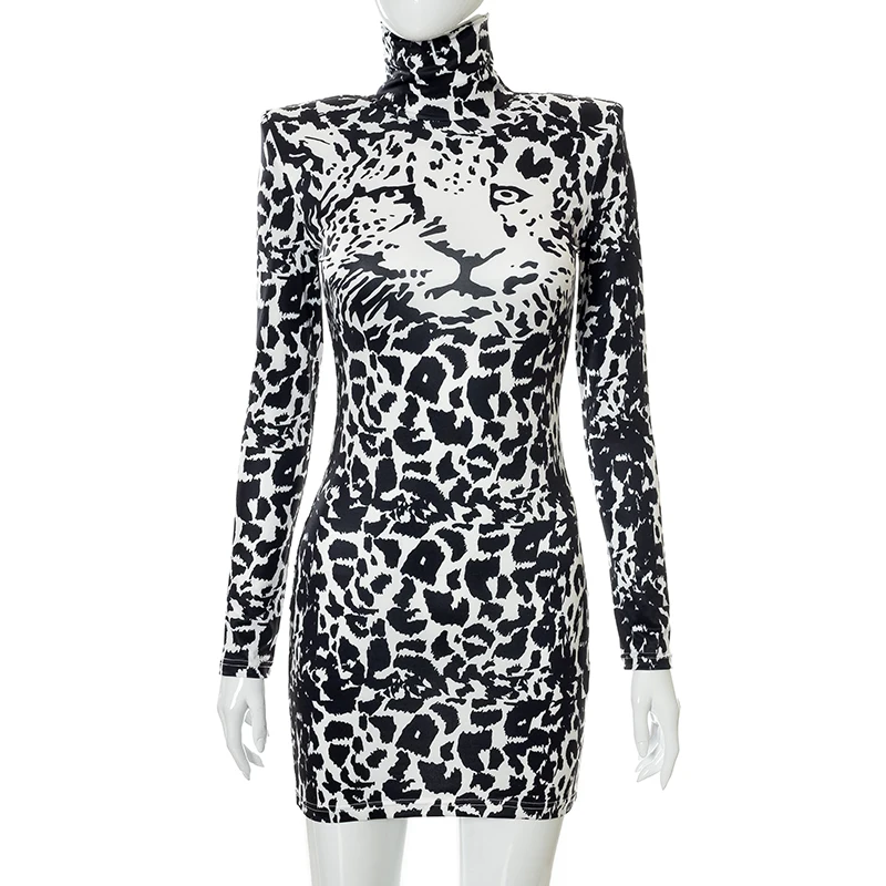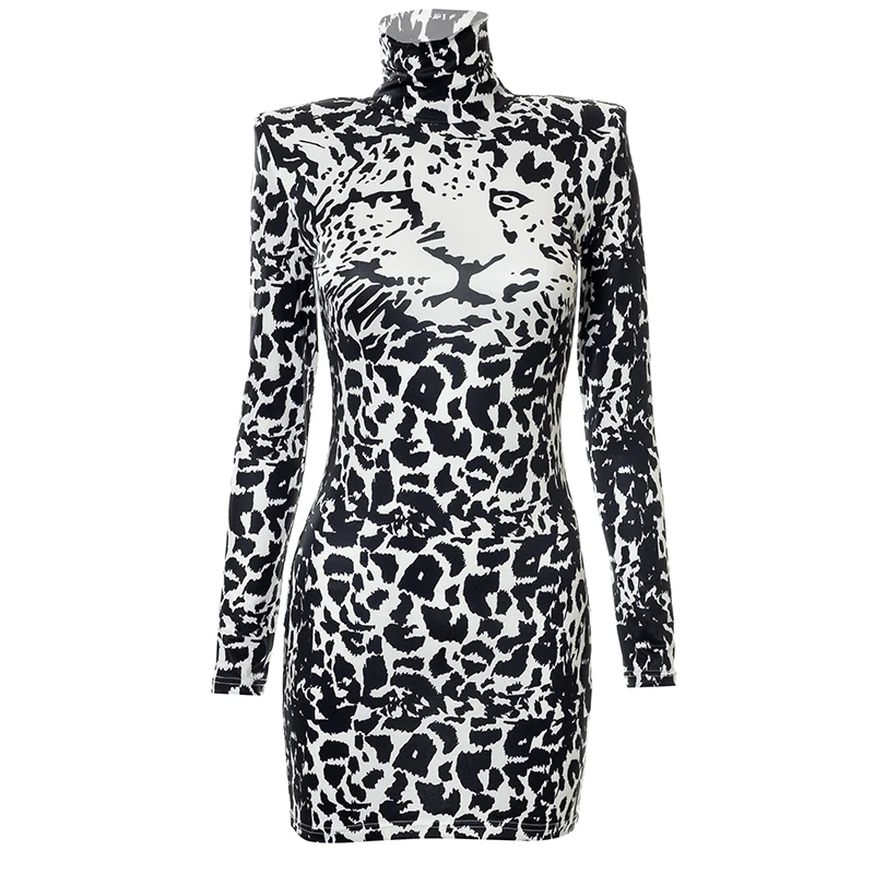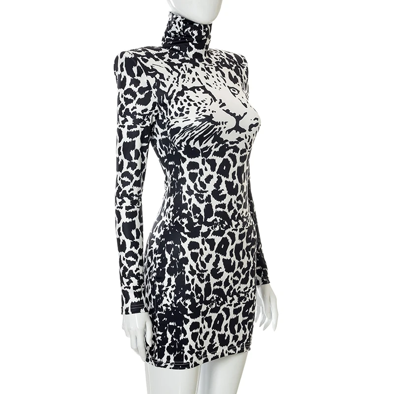 victoria’s vogue Sexy Party Club Bodycon Dresses For Women 2022 Autumn Print Turtleneck Shoulder Pads Long Sleeve Dress Female Streetwear