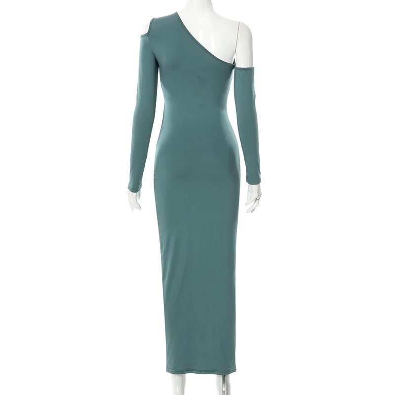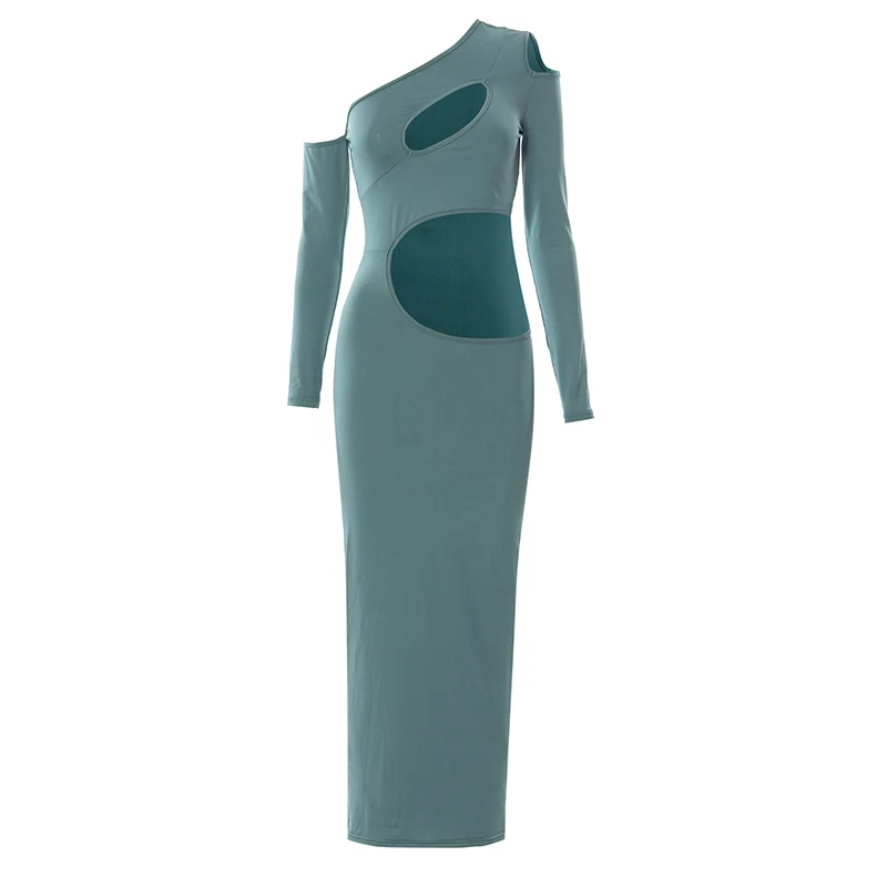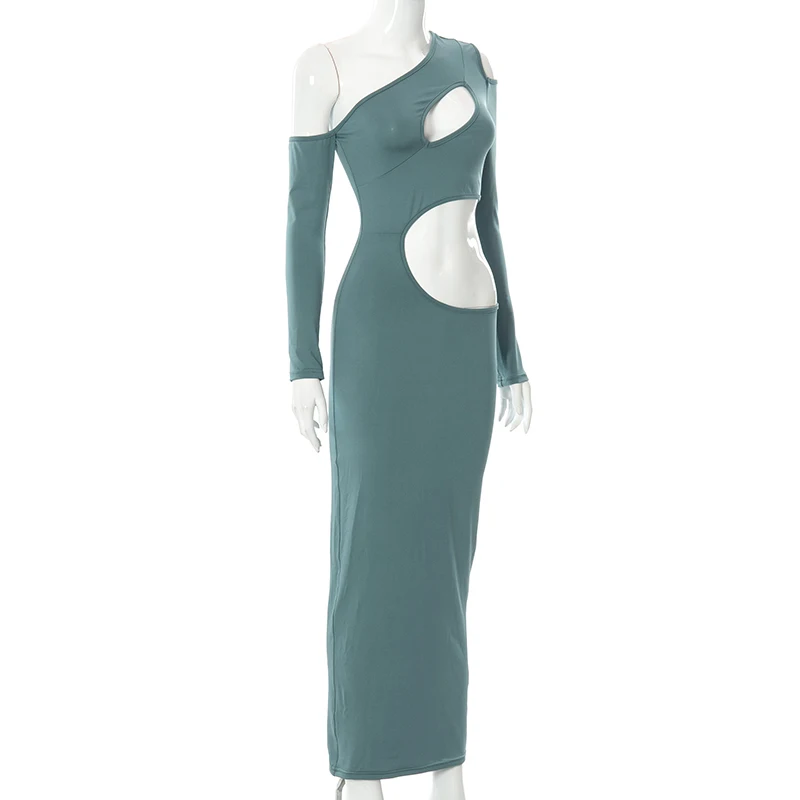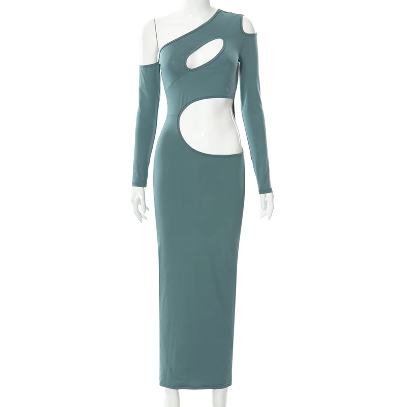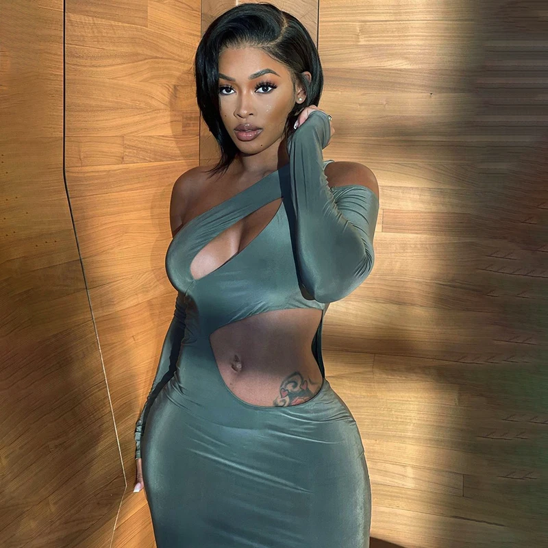 victoria’s vogue Sexy Party Club Bodycon Dresses For Women 2022 Autumn Solid Diagonal Collar Cut Out Midi Dress Female Streetwears