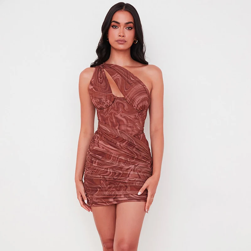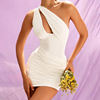 victoria’s vogue Sexy Party Club Bodycon Dresses For Women’s 2022 Summer Clothing Single Shoulder Shirring Mixi Dress Female Streetwears