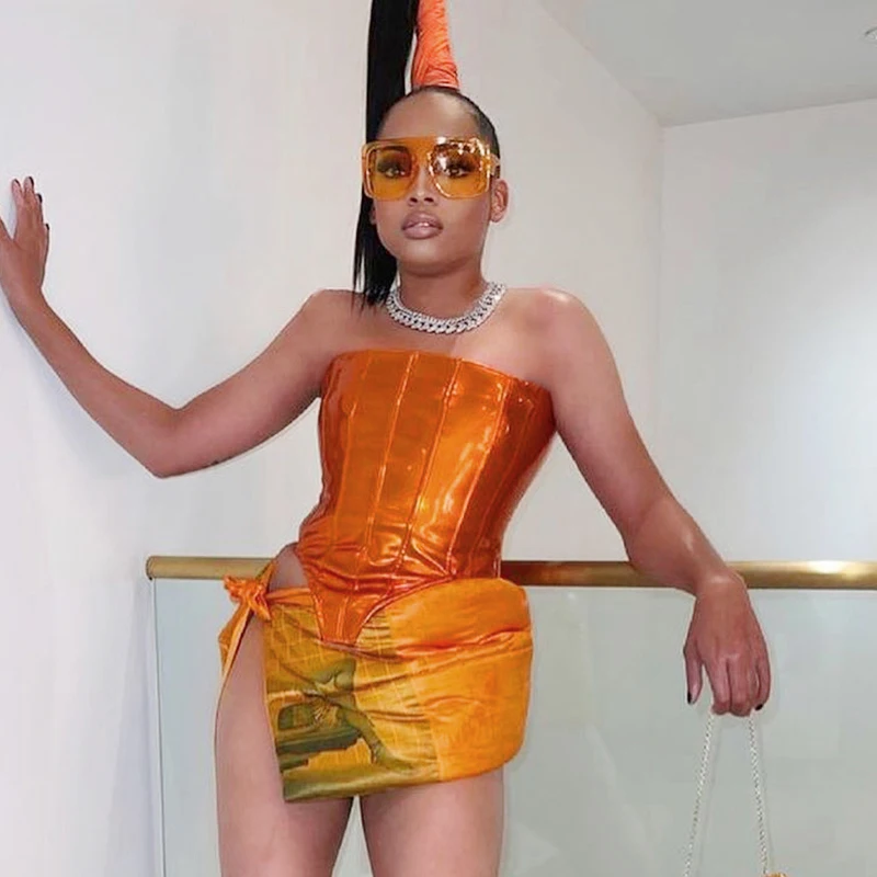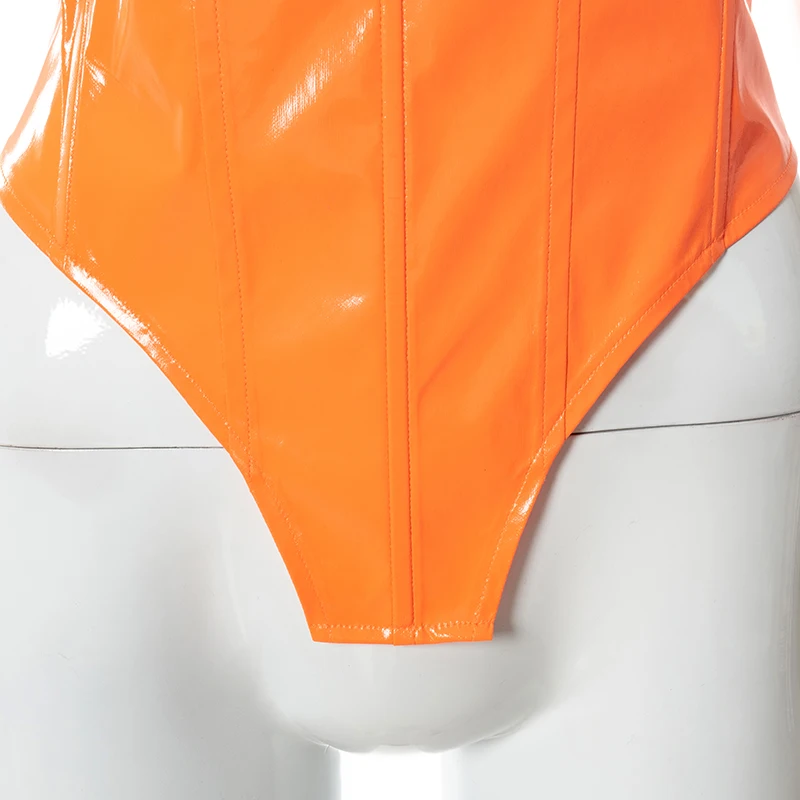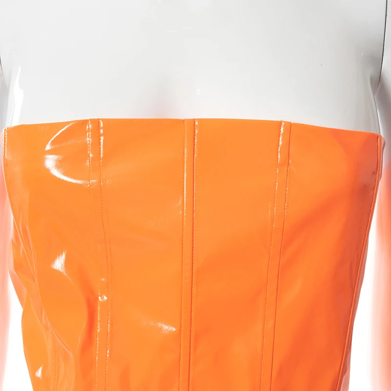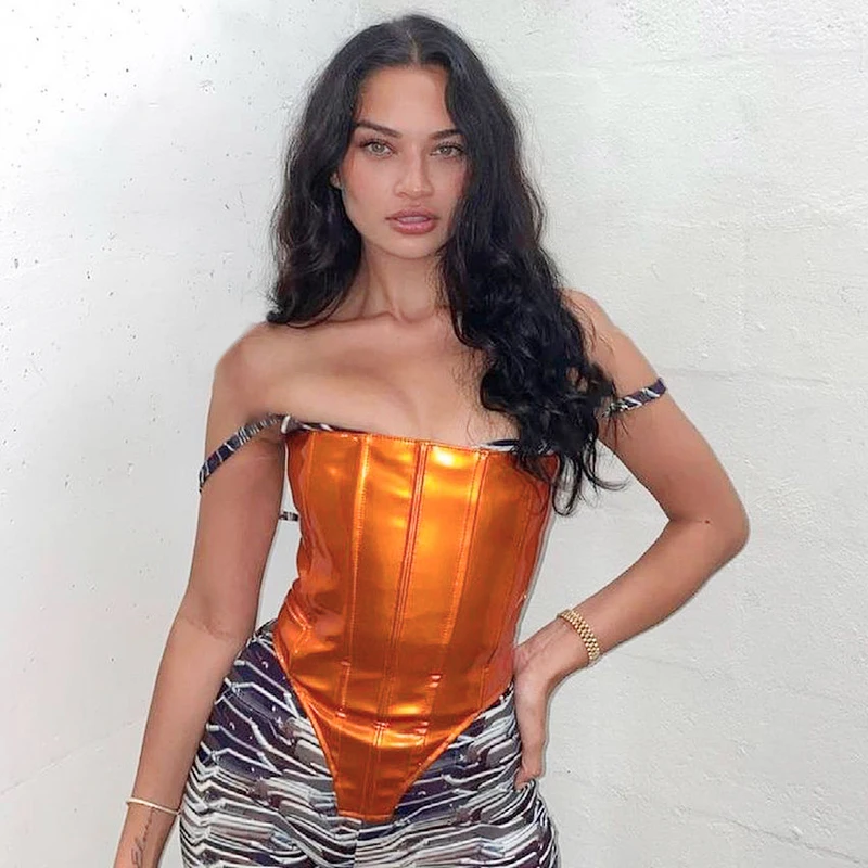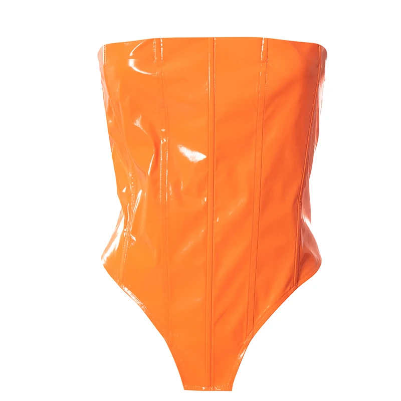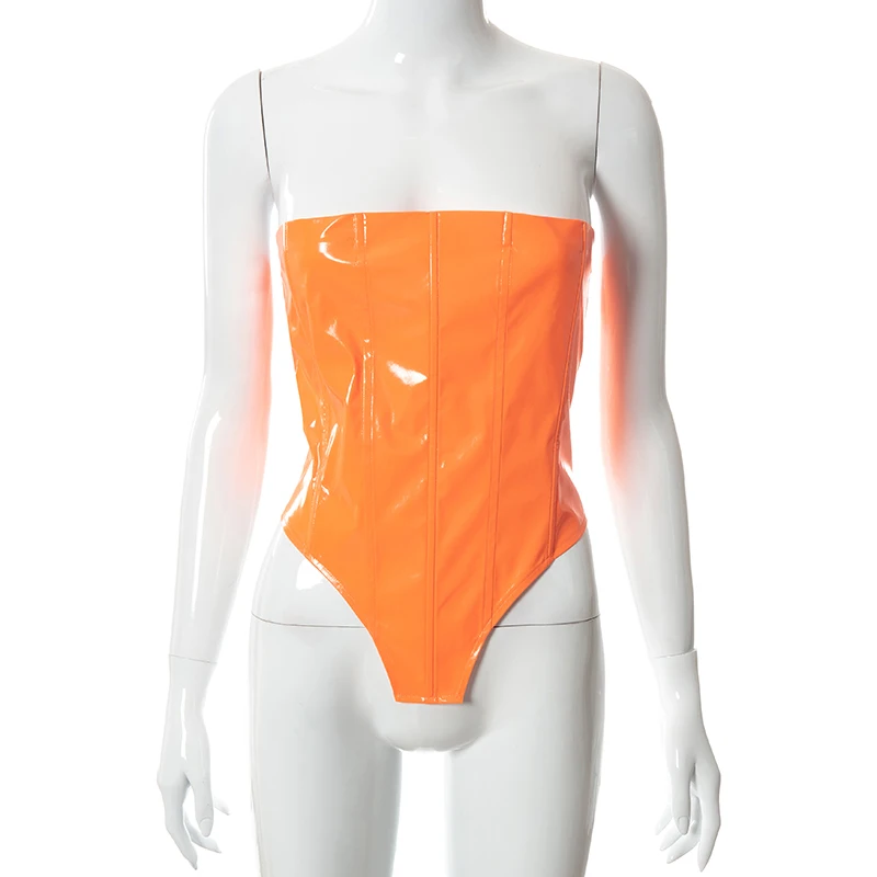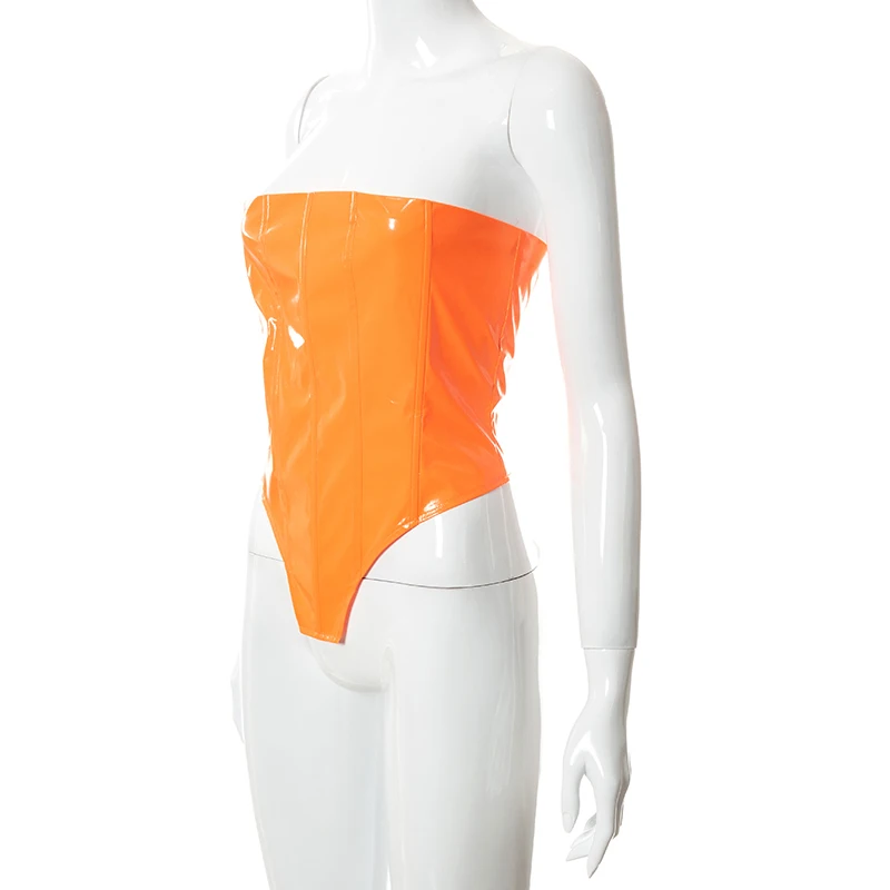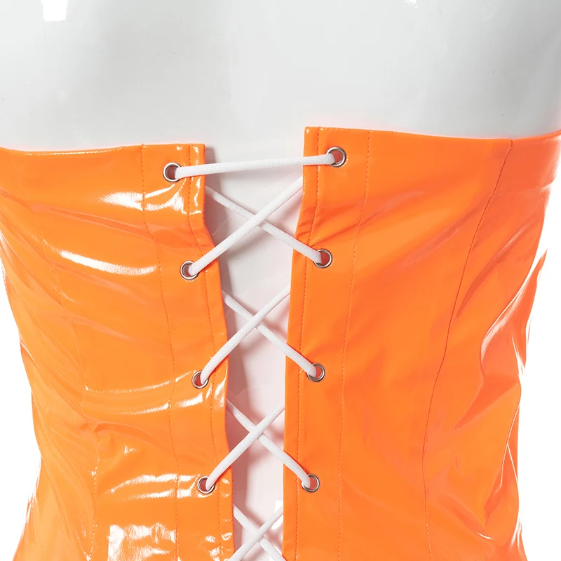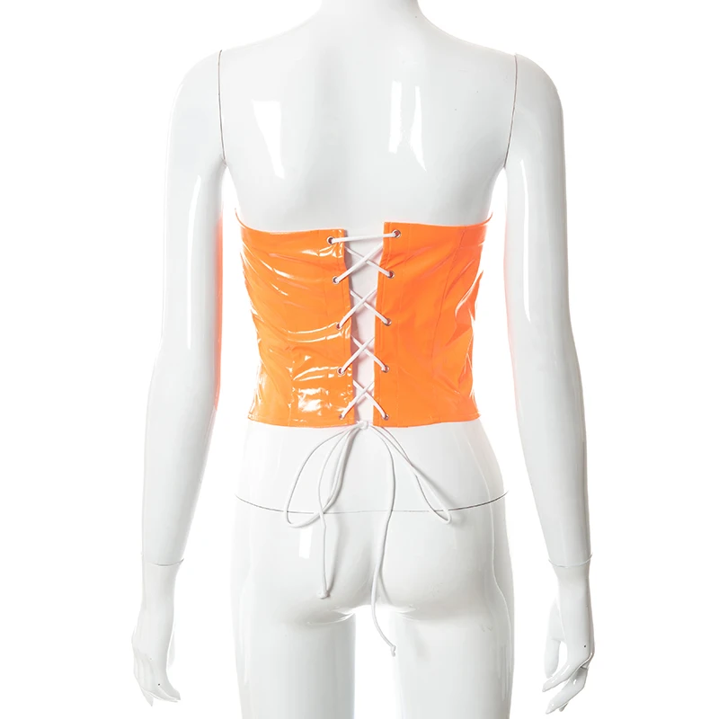 victoria’s vogue Sexy Party Club Women’s PU Material Solid Tops Summer 2022 Strapless Irregularity Lace Up Corset Tops Female Streetwear