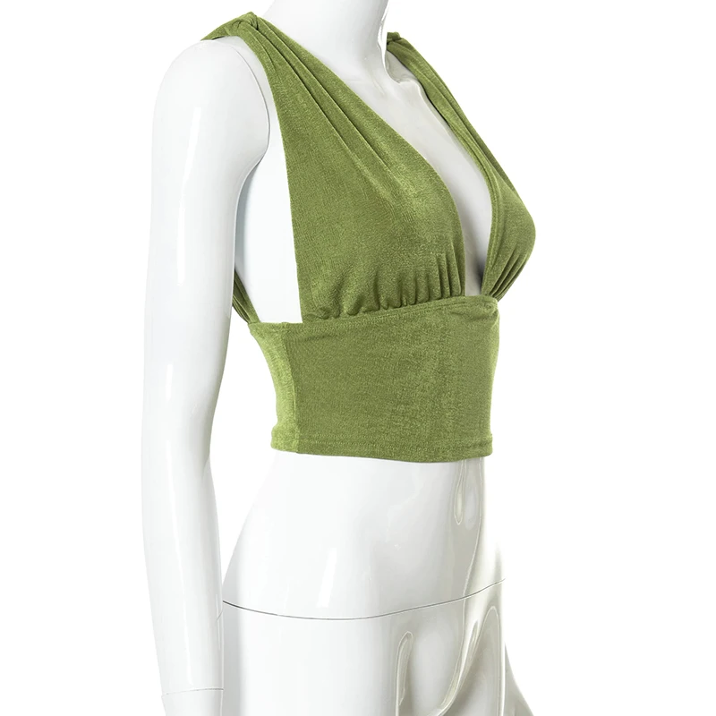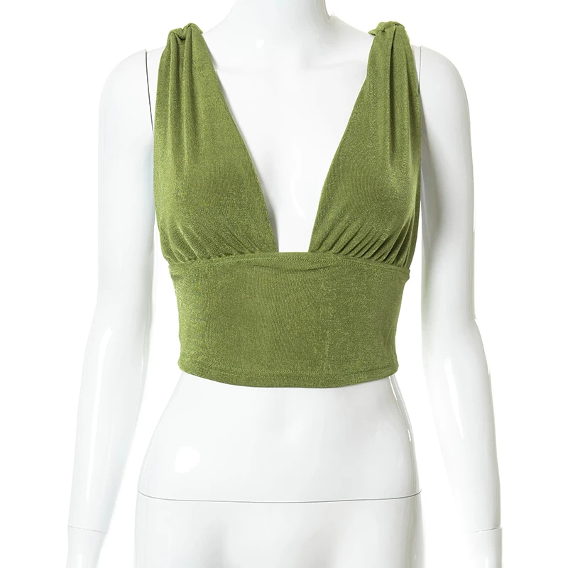 victoria’s vogue Sexy Party Club Women’s Solid Y2K Crop Top Summer 2022 Sleeveless Patchwork Deep V-neck Female Fashion Tops Streetwears