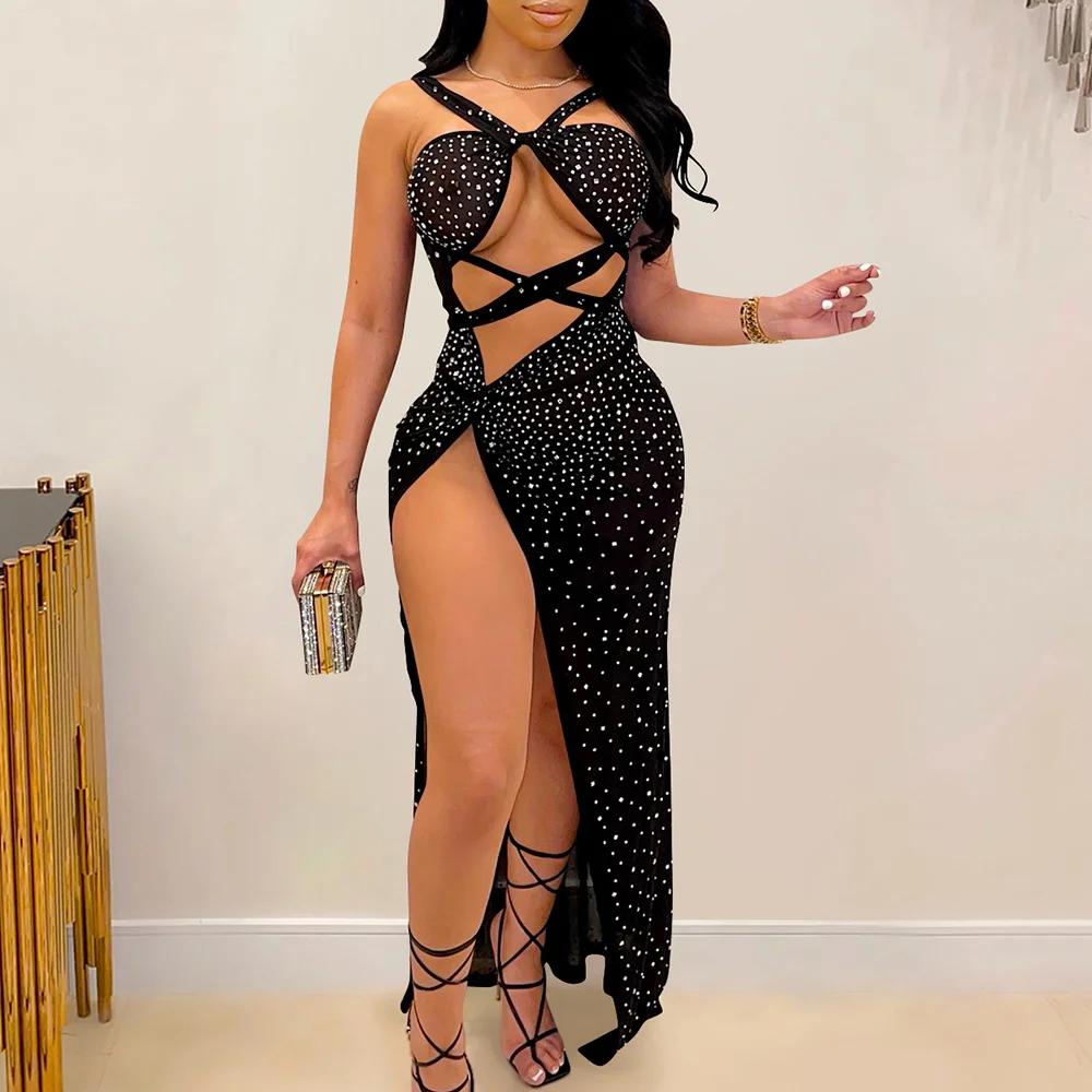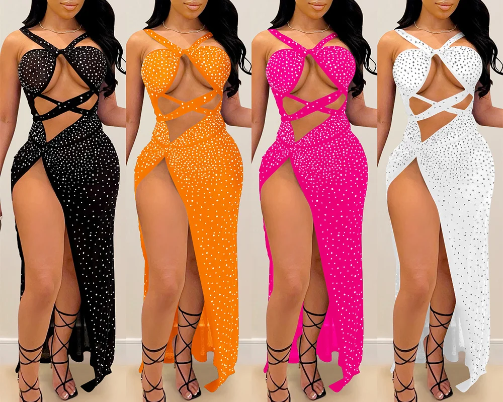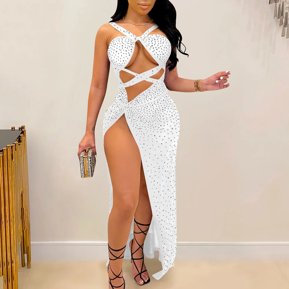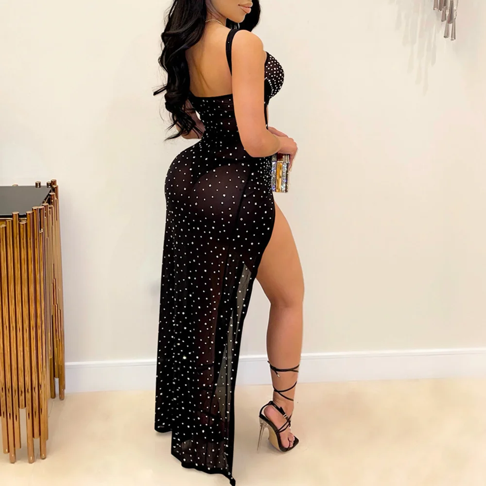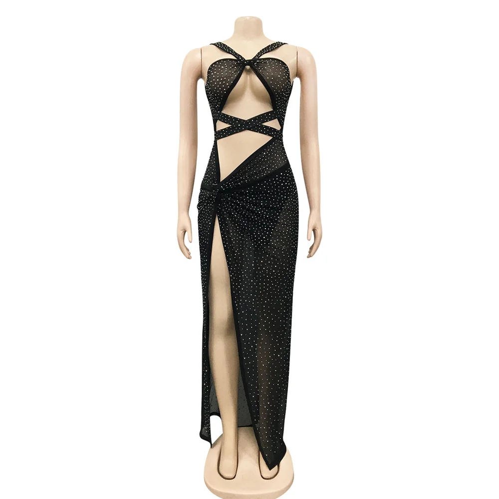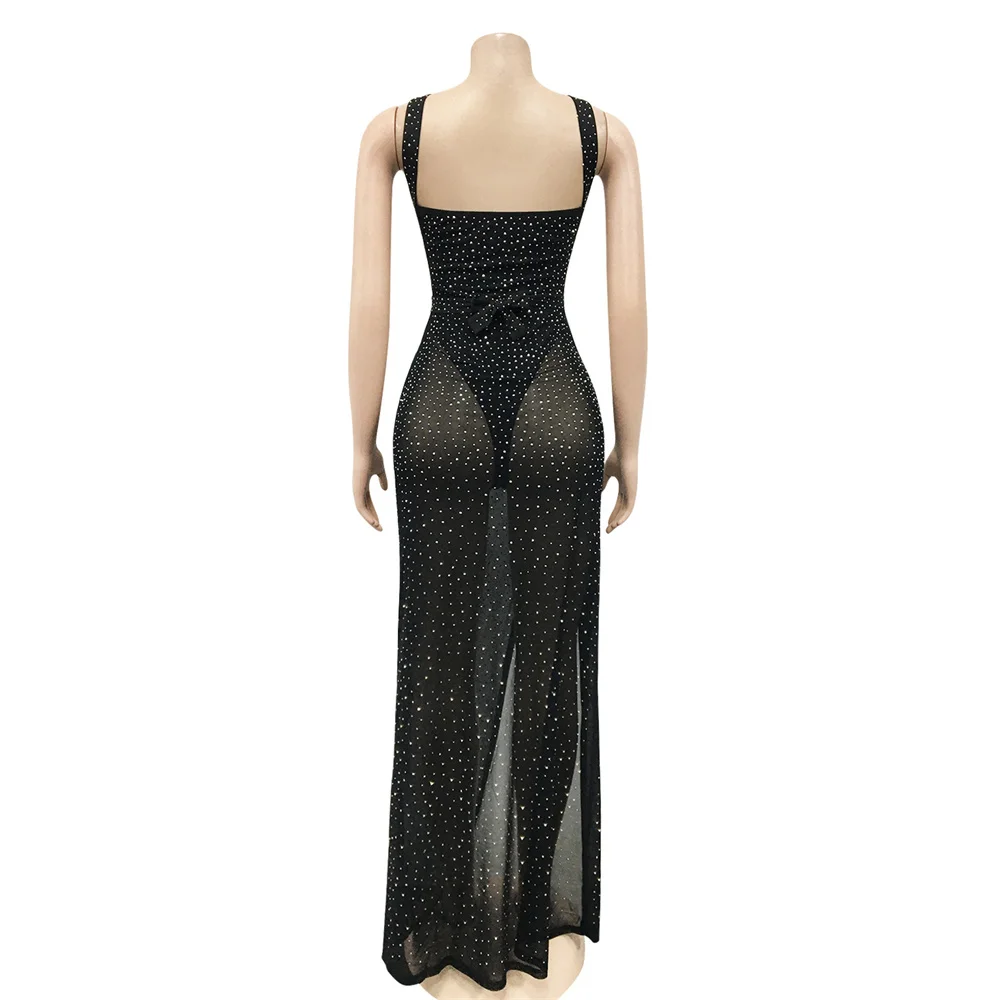 victoria’s vogue Sexy see through slip Rhinestone corset maxi summer dress women backless woman y2k mesh club bodycon party dress evening dresses