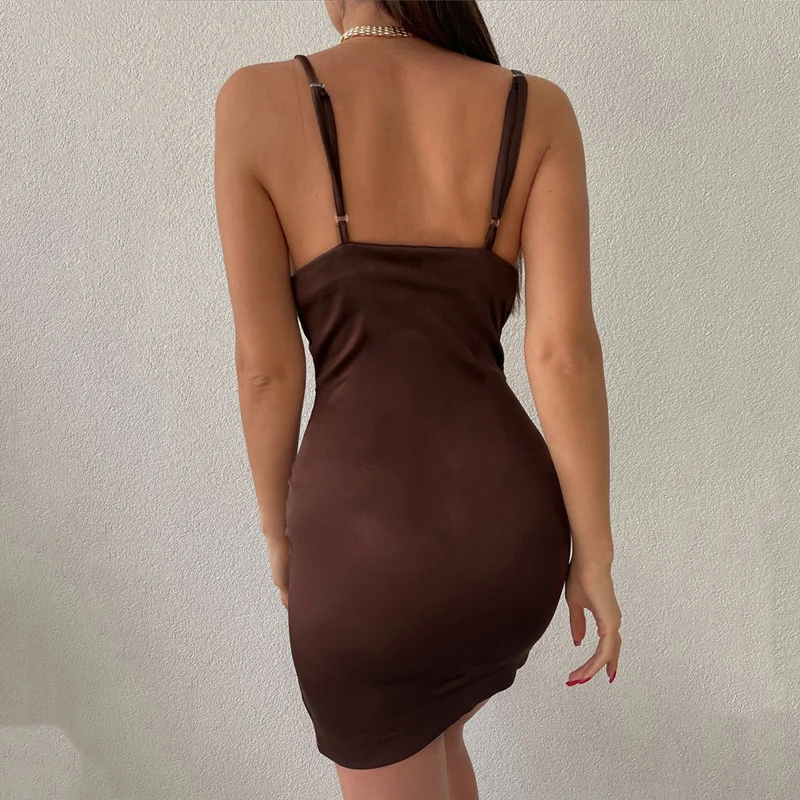 victoria’s vogue Sexy Spaghetti Strap Backless Mini Dress For Women 2022 Summer New Sleeveless Split Zipper Bodycon Elegant Dress