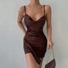 victoria’s vogue Sexy Spaghetti Strap Backless Mini Dress For Women 2022 Summer New Sleeveless Split Zipper Bodycon Elegant Dress