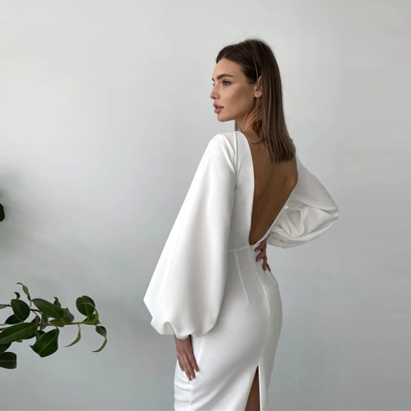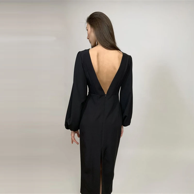 victoria’s vogue Sexy Split Backless Midi Dress Bodycon Autumn Lantern Sleeve Fashion Tight Elegant Night Club Party Dresses For Women 2021ori