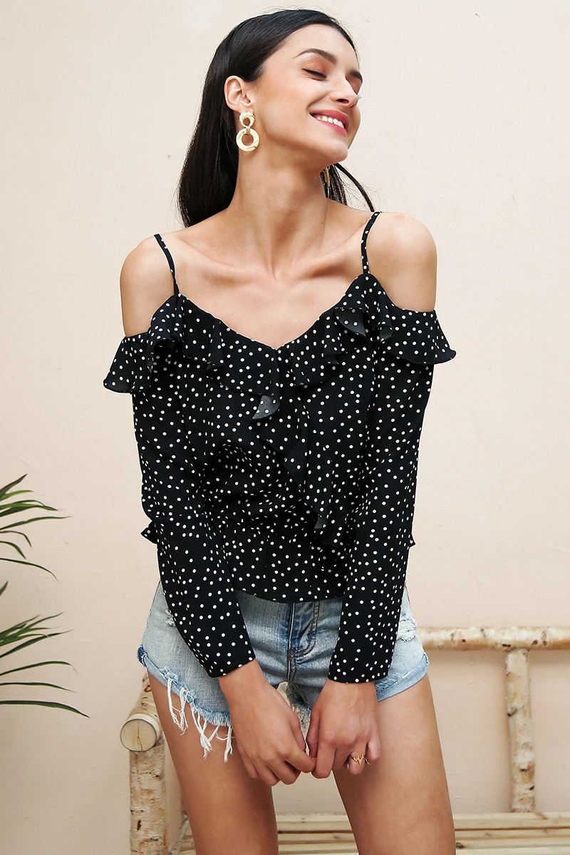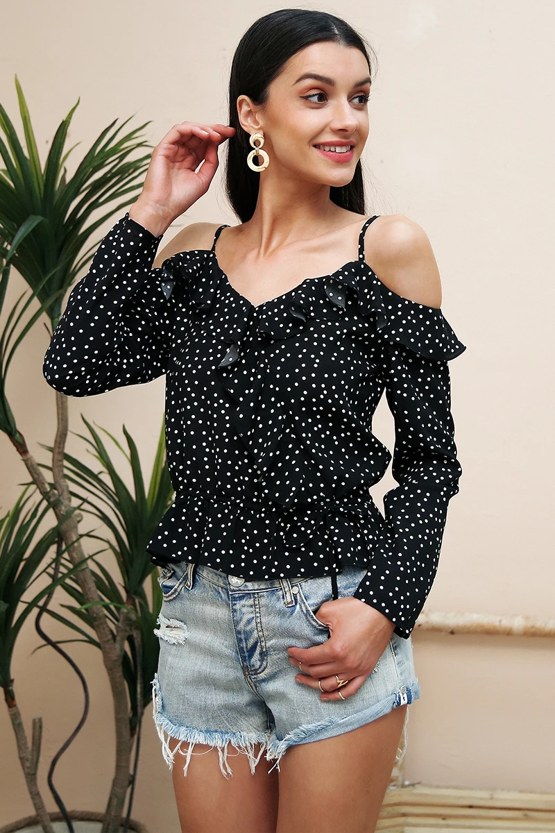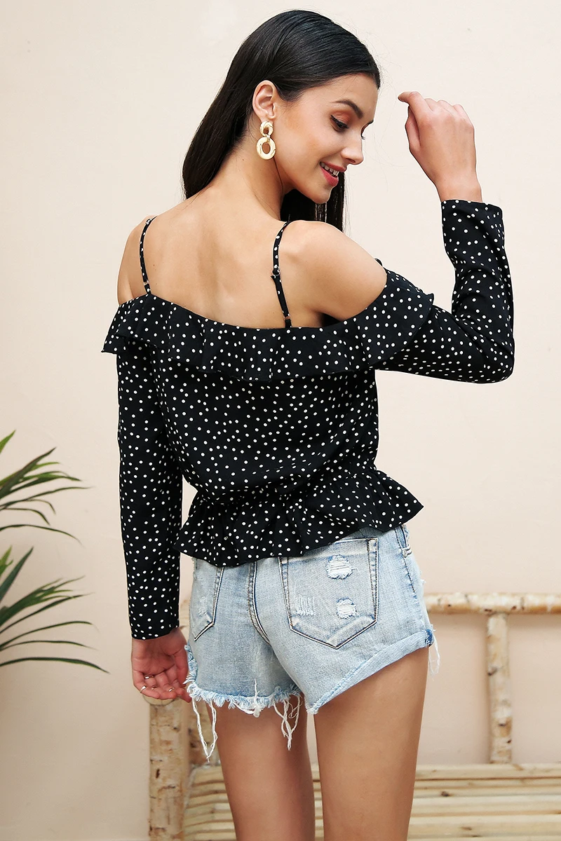 victoria’s vogue Sexy stap ruffle blouses shirts women V neck cold shoulder summer blusas feminina Vintage long sleeve white blouse top