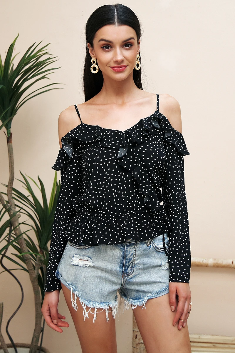 victoria’s vogue Sexy stap ruffle blouses shirts women V neck cold shoulder summer blusas feminina Vintage long sleeve white blouse top