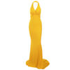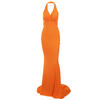 victoria’s vogue Sexy Summer Evening Party Dress Deep V Neck Halter Sleeveless Backless Sash Stretch Orange Yellow Long Gown