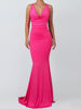 victoria’s vogue Sexy Summer Hot Pink Evening Party Mermaid Dress Deep Cowl Neck Cross Back Sleeveless Backless Sash Stretch Prom Gown