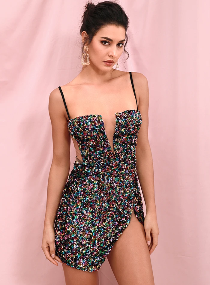 victoria’s vogue Sexy Tube Top Black Cut Out Stretch Sequin Bodycon Party Mini Dress