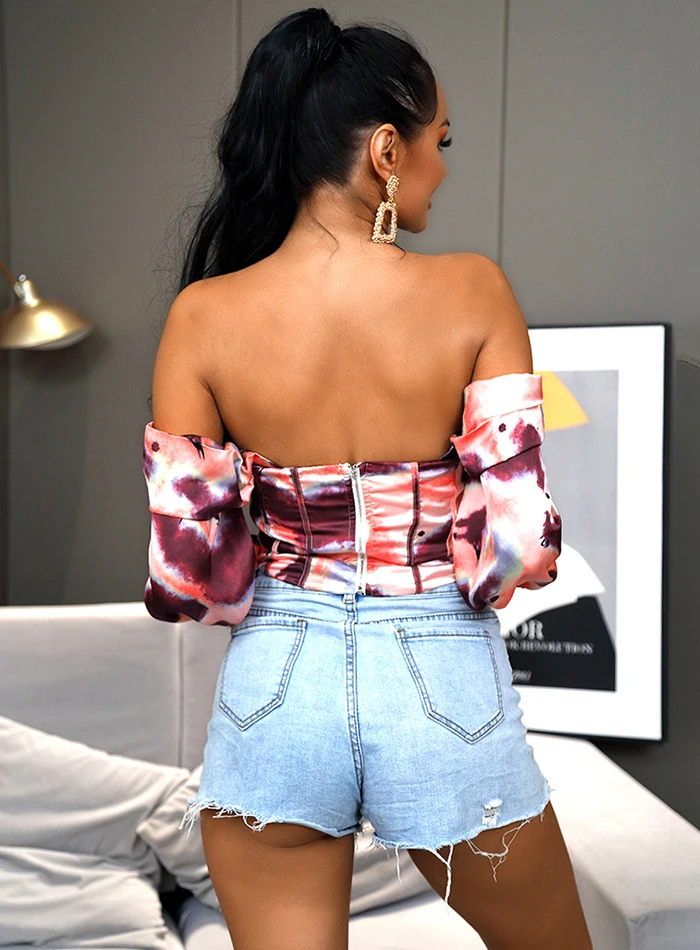 victoria’s vogue Sexy Tube Top Color Tie-Dye Lantern Long Sleeve Bodycon Top