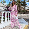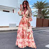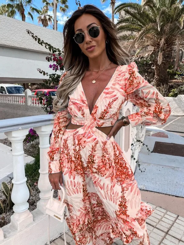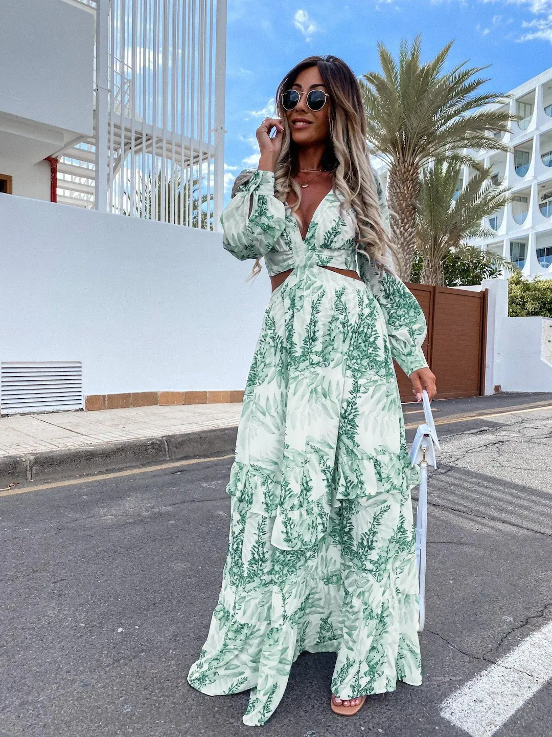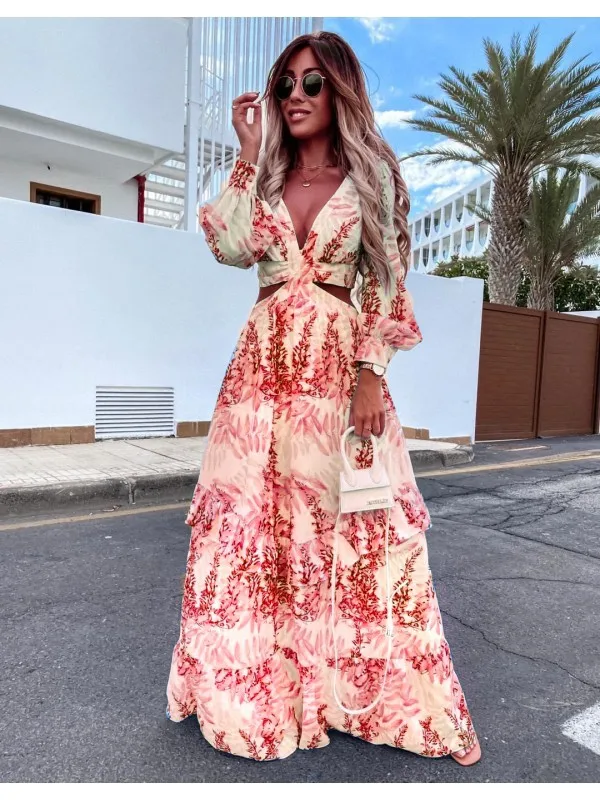 victoria’s vogue Sexy V-Neck Backless Hollow Out Dress Summer Women Long Lantern Sleeve Club Party Long Maxi Dresses