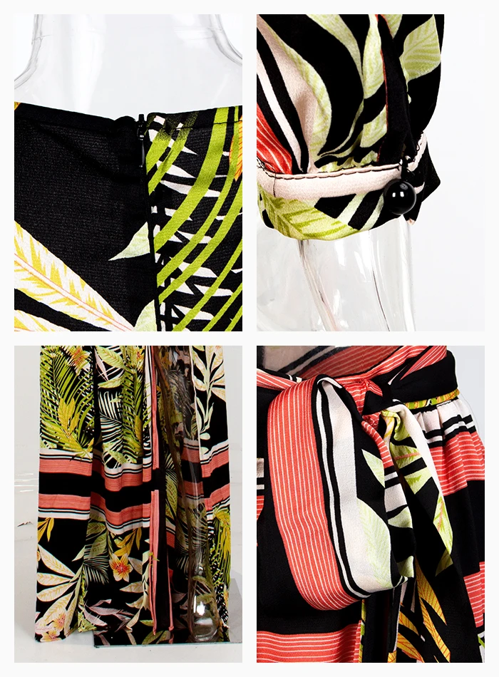 victoria’s vogue Sexy V-neck Cut Out Straps Long Sleeves Open Geometric Print Beach Long Dress