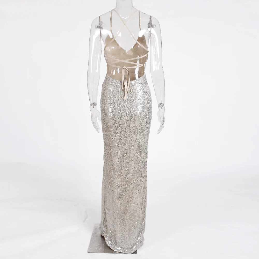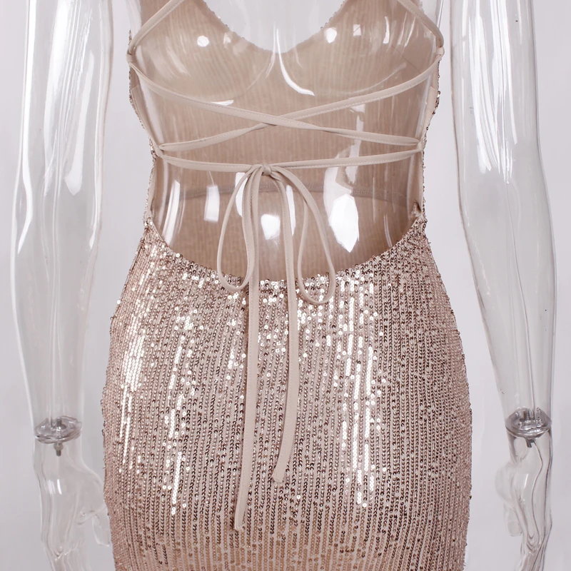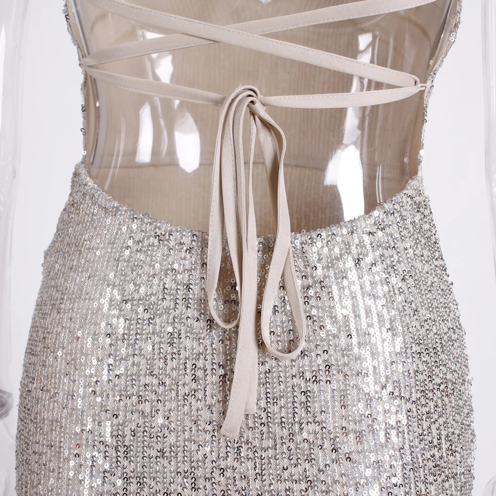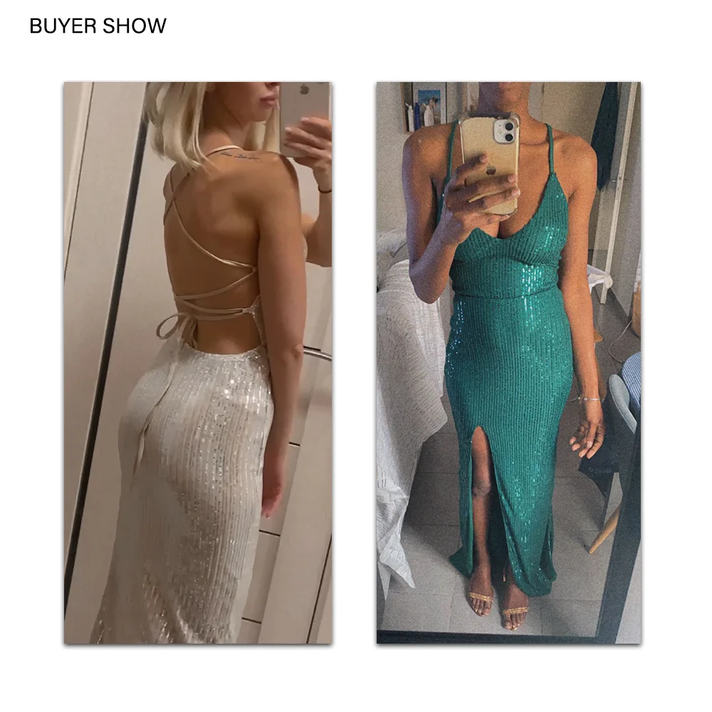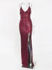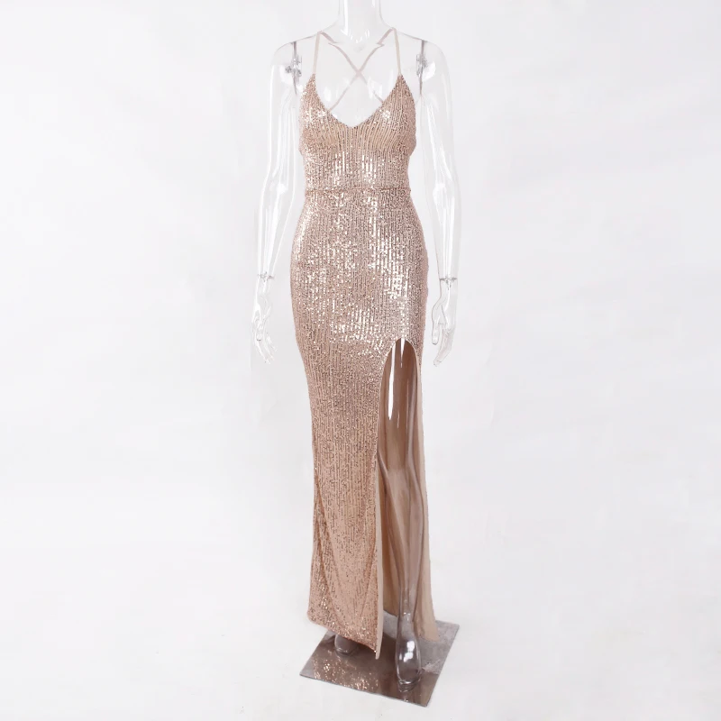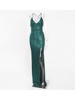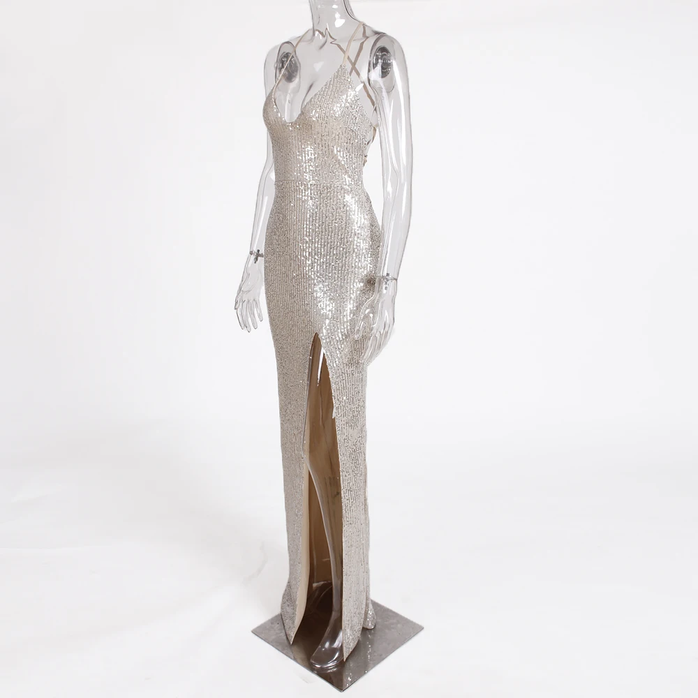 Victorias vogue Sexy V Neck Lace Up Sequined Cocktail Party Dress Backless Split Leg Sleeveless Summer Long Dresses Evening Wedding Gown