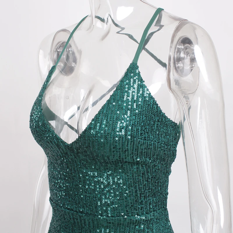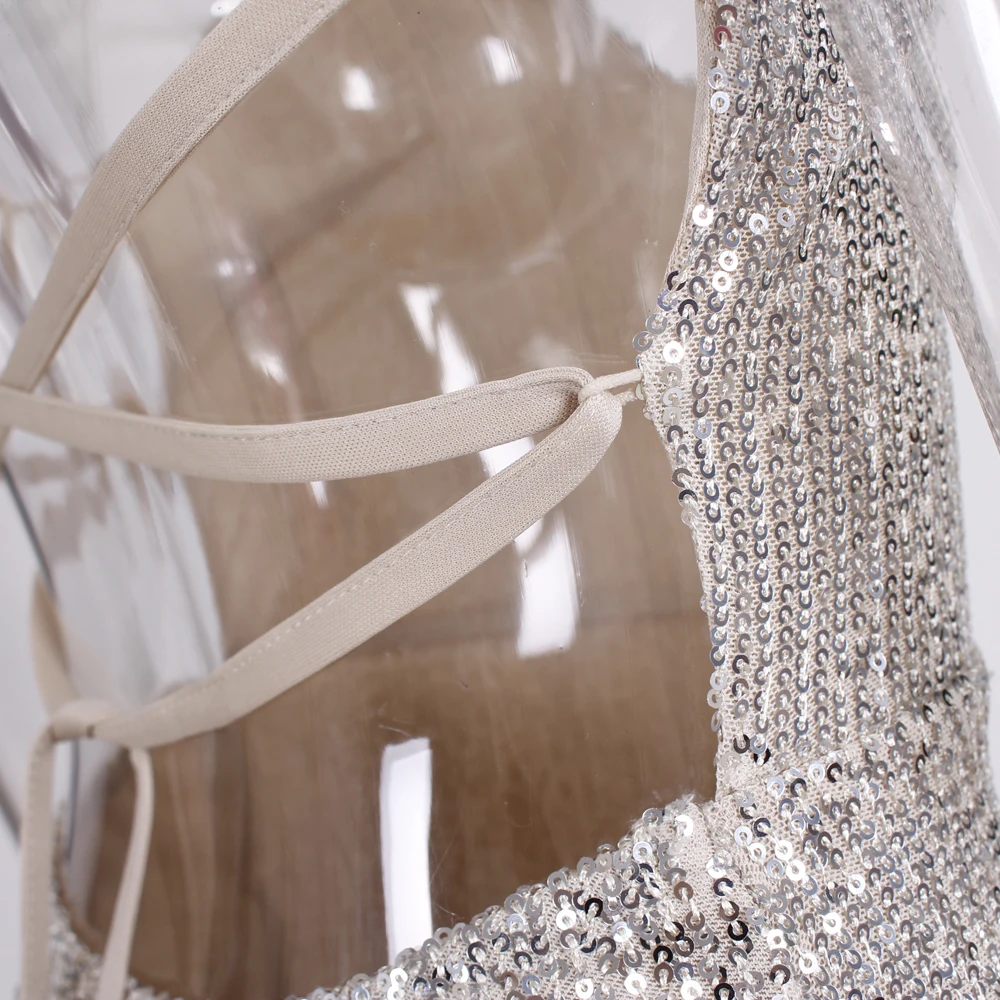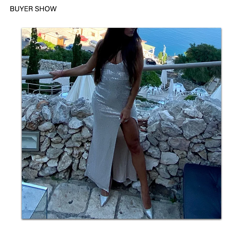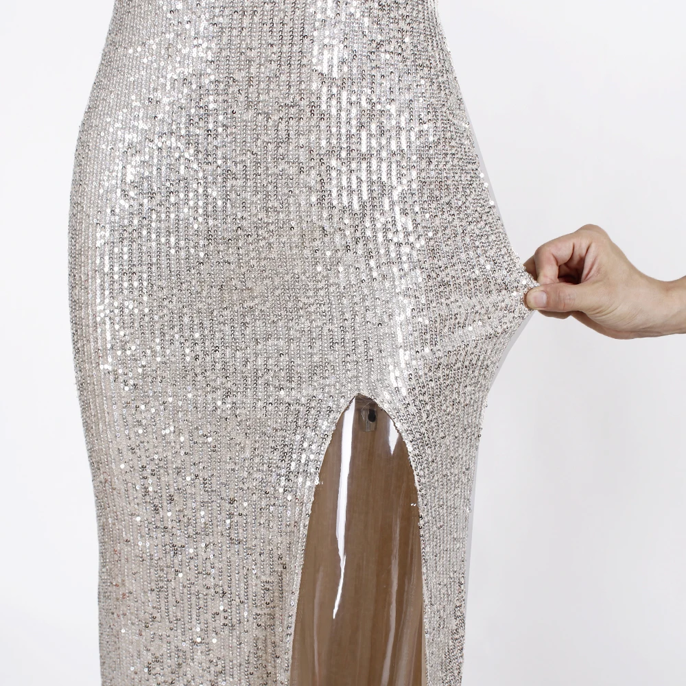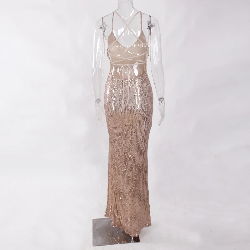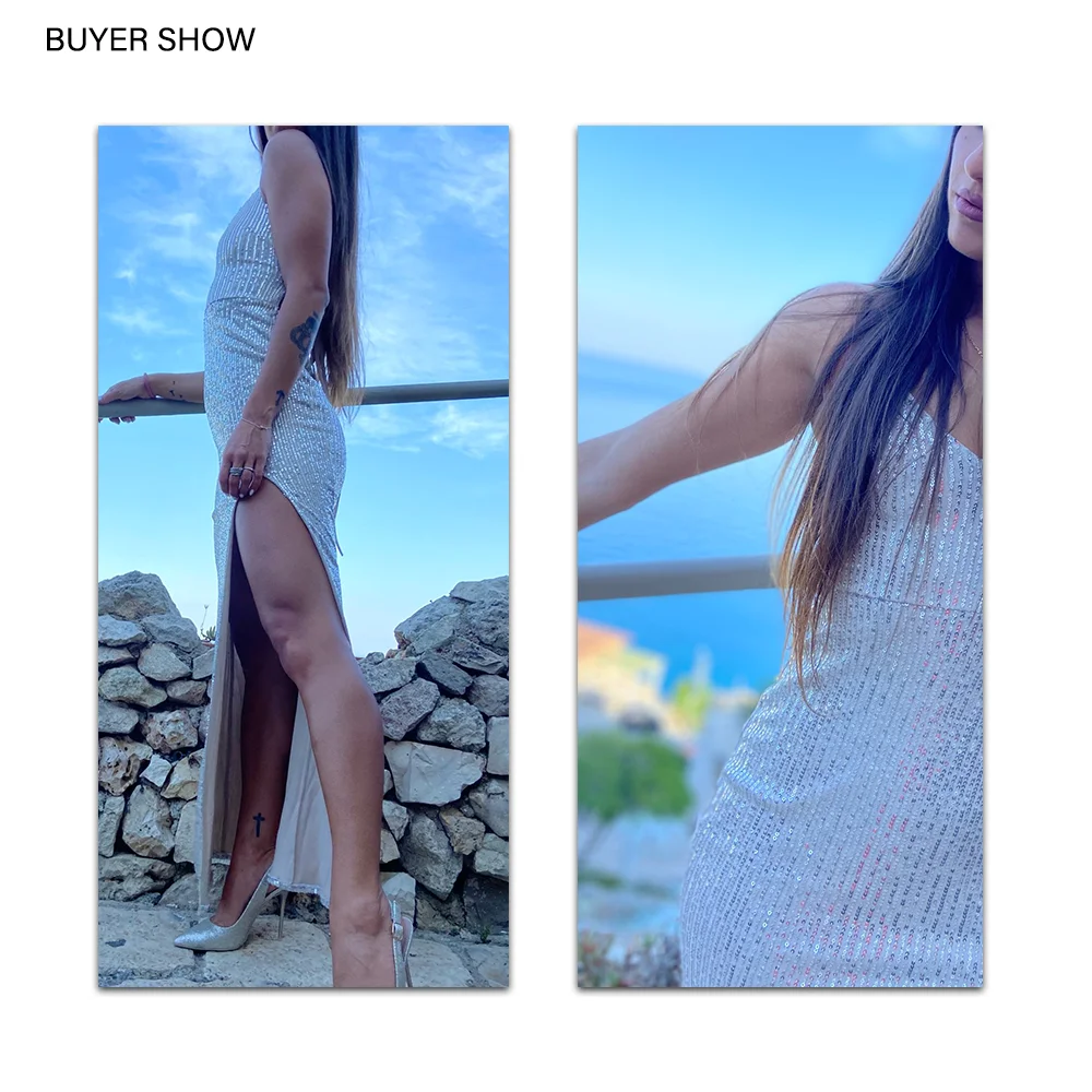 Victorias vogue Sexy V Neck Lace Up Sequined Cocktail Party Dress Backless Split Leg Sleeveless Summer Long Dresses Evening Wedding Gown