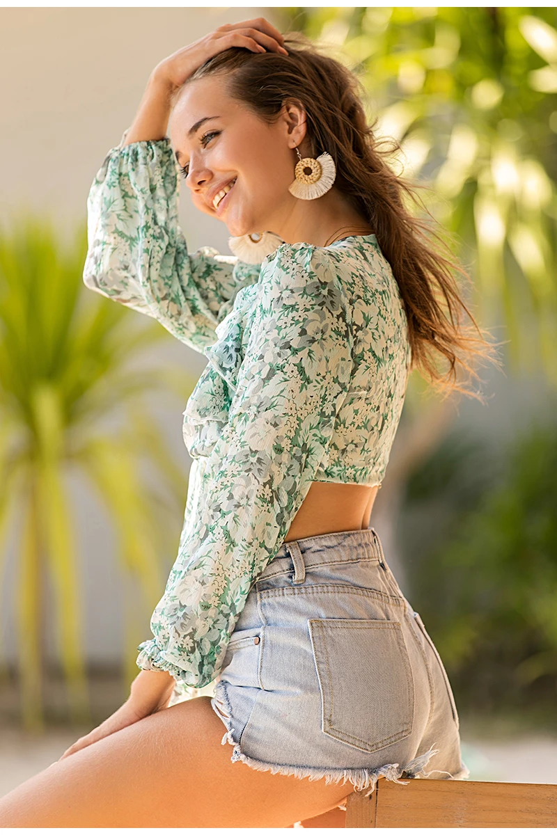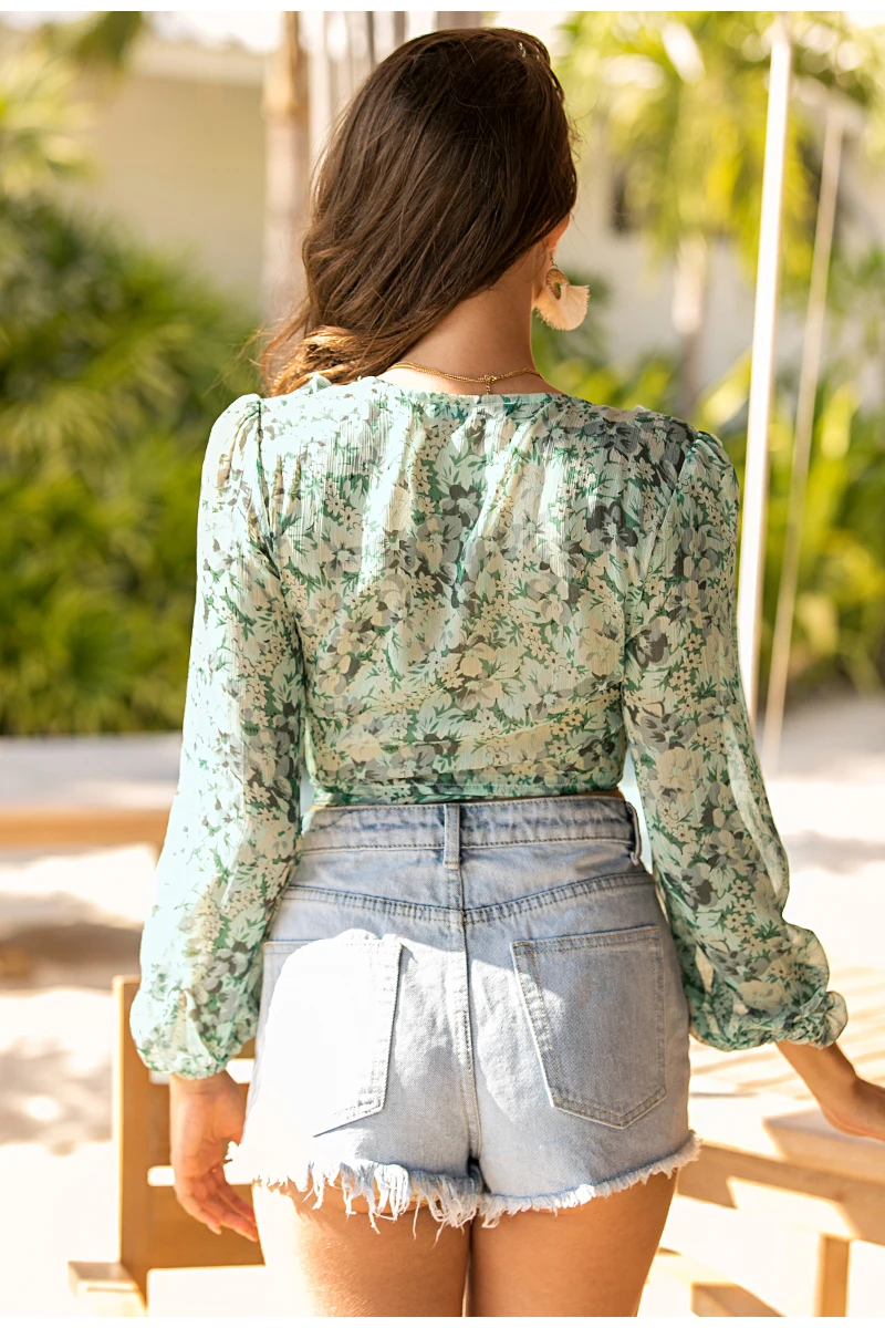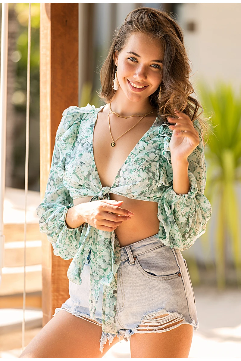 victoria’s vogue Sexy v-neck women chiffon blouse shirt Ruffled bow tie female tops shirt Vintage floral print bohemian ladies blouse