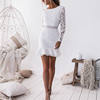 Victoria’s Vogue Sexy Women Dress Lace Floral 2024 Elegant Spring Summer Clothes Long Sleeve Backless Hollow Out Bandage Bodycon Dress