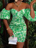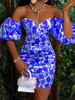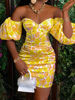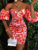 victoria’s vogue Sexy Women Print Bodycon Dresses Package Hip with Floral Pattern Short Full Sleeves Cocktail Party Evening Summer Slim Dress