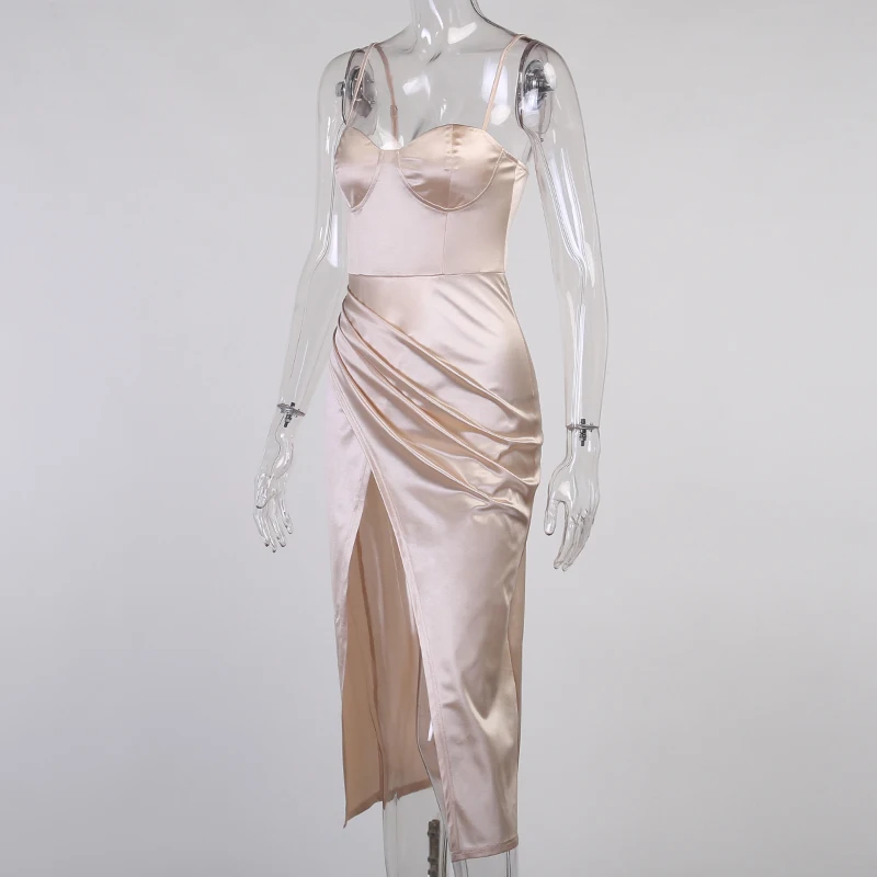victoria’s vogue Sexy Women’s Dress Spaghetti Strap Sleeveless Slim Summer Hem Split Casual Streetwear Elegant Party Ruched Dress Women